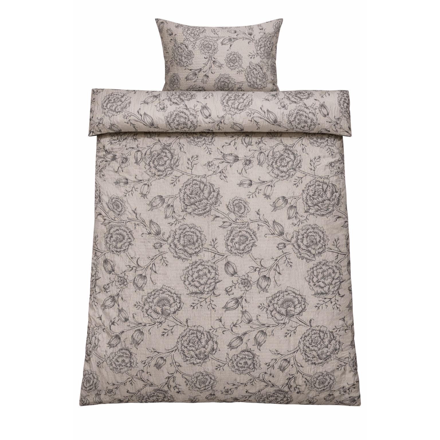 Sengetøj 140x200 cm - Bæk og Bølge - 100% bomulds krep - Sandfarvet blomster print