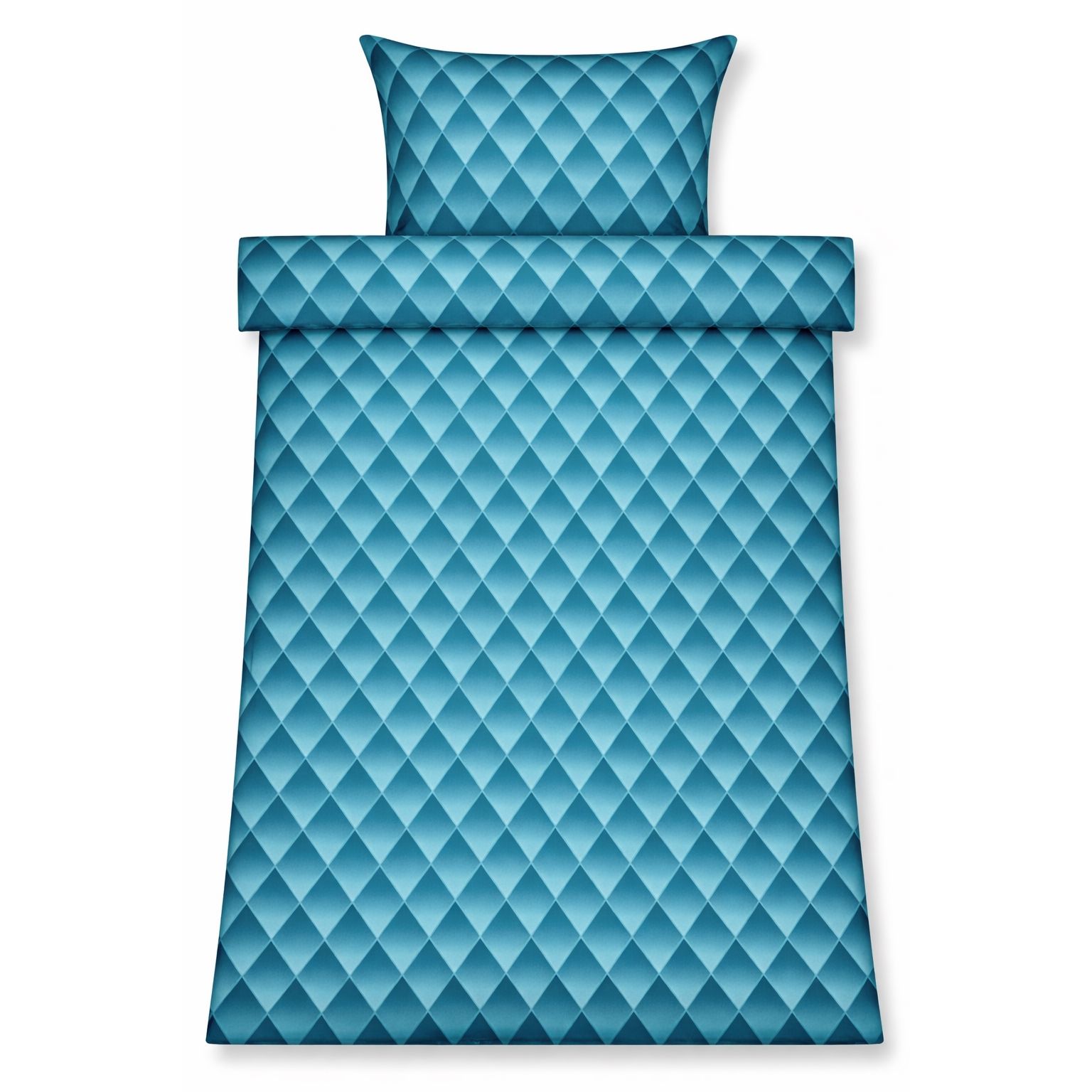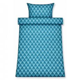 Sengetøj 140x200 cm - 100% bomuldssatin - Blåt 3D harlekinmønster
