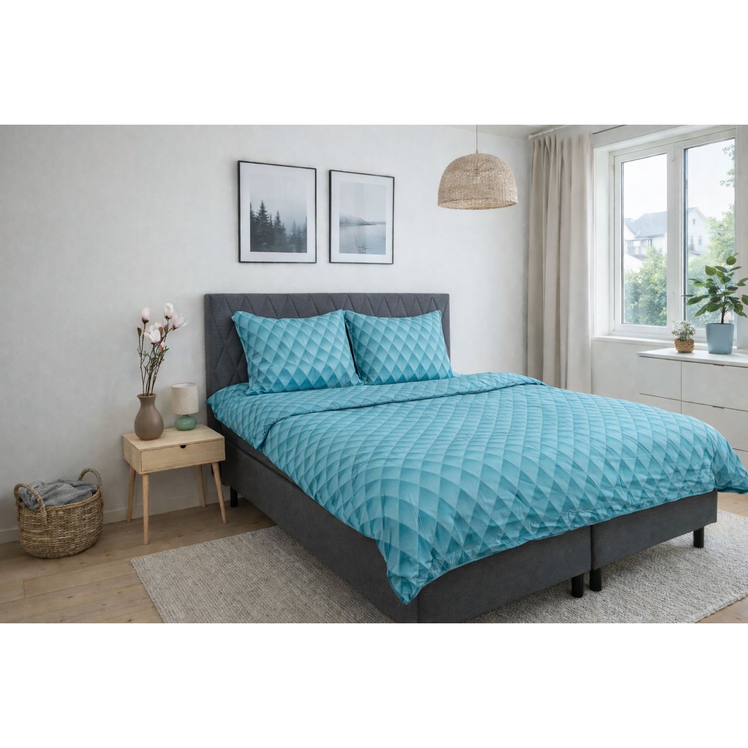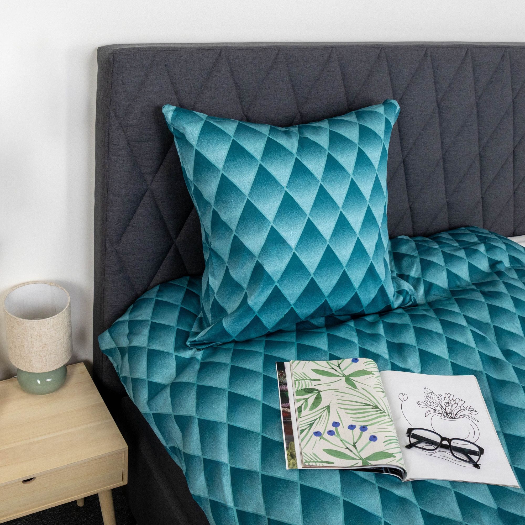Giv soveværelset et eksklusivt og moderne udtryk med dette blå harlekin sengetøj i 100% bomuldssatin. Det graduerede diamantmønster skaber en flot 3D effekt, hvor farverne glider harmonisk over i hinanden og giver sengen dybde og karakter. Et sengesæt, der både tilføjer personlighed og elegance til din indretning.