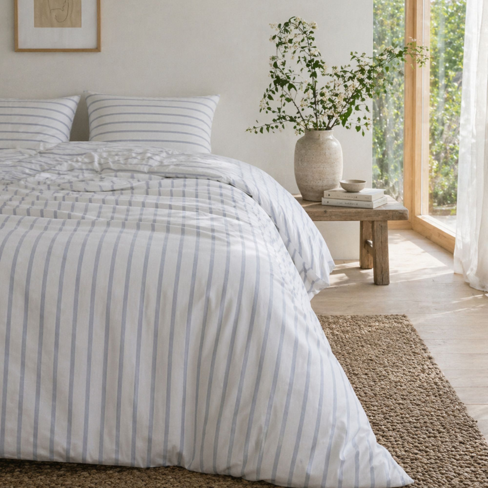 Bæk og bølge vævningen danner små luftlommer i stoffet, hvilket gør sengetøjet ekstra åndbart og let at sove i. Overfladen føles køligere mod huden end traditionelt glat sengetøj og er derfor særligt velegnet til varme nætter eller til dig, der ofte får det varmt, når du sover. Samtidig bevarer bomulden sin naturlige blødhed og evne til at absorbere fugt, så du får en behagelig og tør sovekomfort. Sengetøjet har en trådtæthed på 200TC, som sikrer en god balance mellem holdbarhed, komfort og blødhed. Den vaflede struktur gør, at sengetøjet ikke behøver at blive strøget for at se pænt ud - det karakteristiske udtryk er en naturlig del af designet.