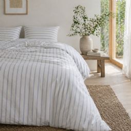 Stribet sengetøj i krep fra Høie