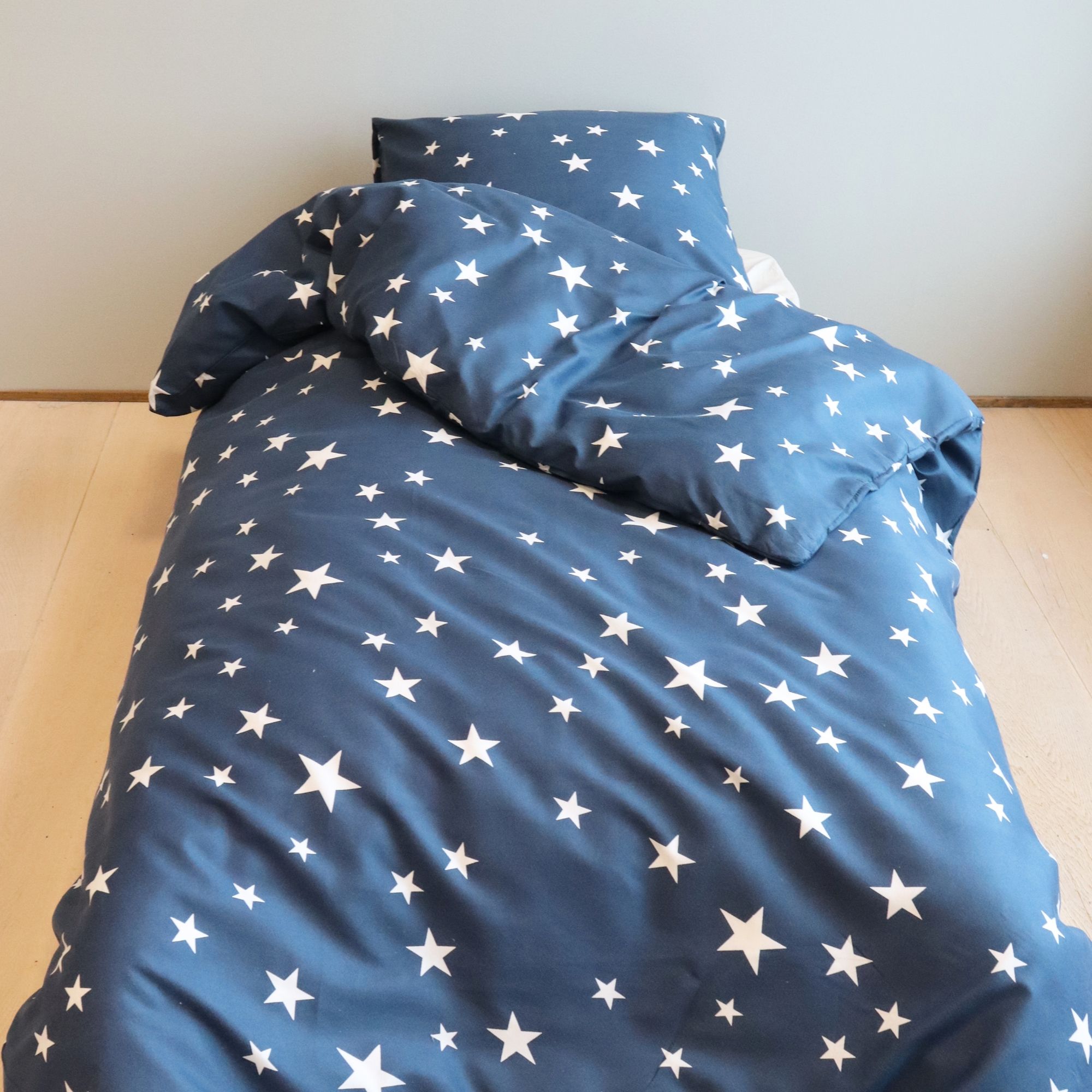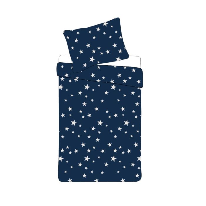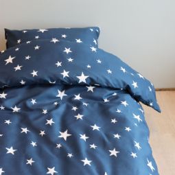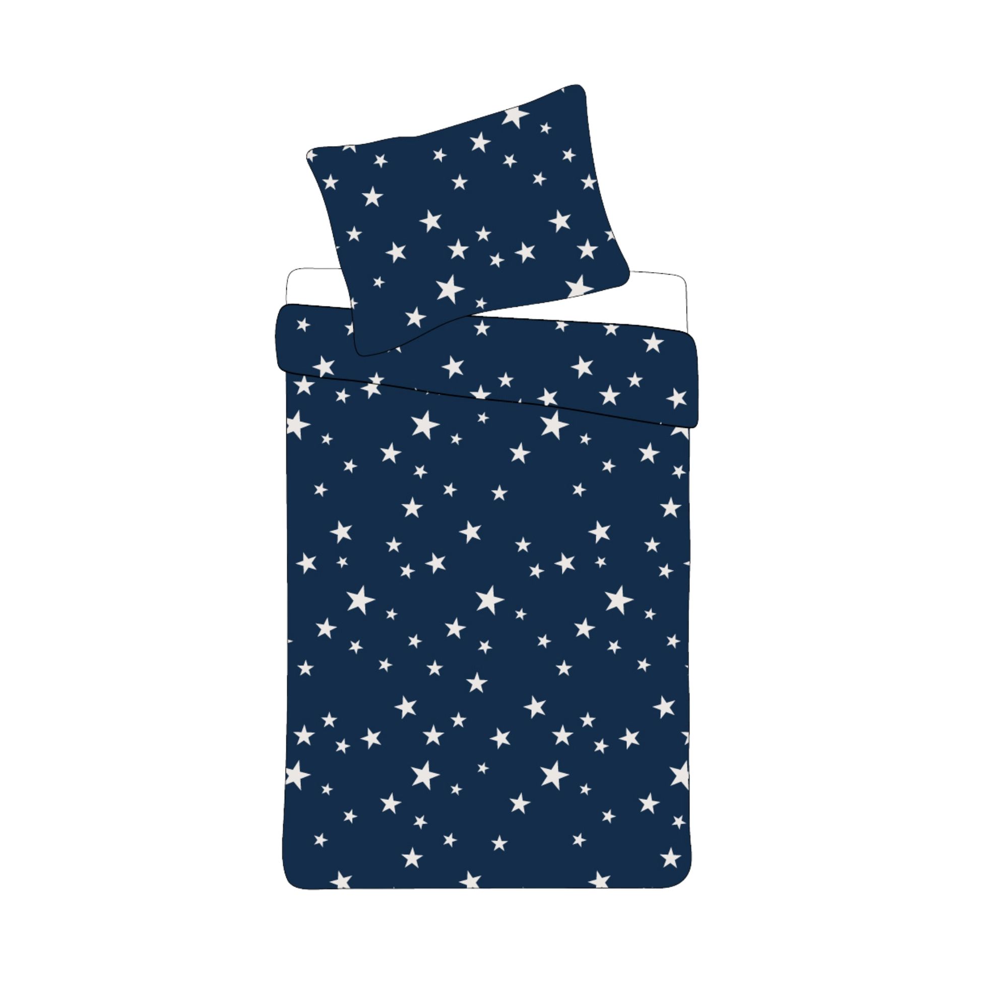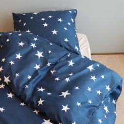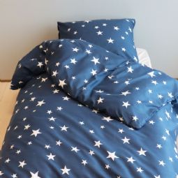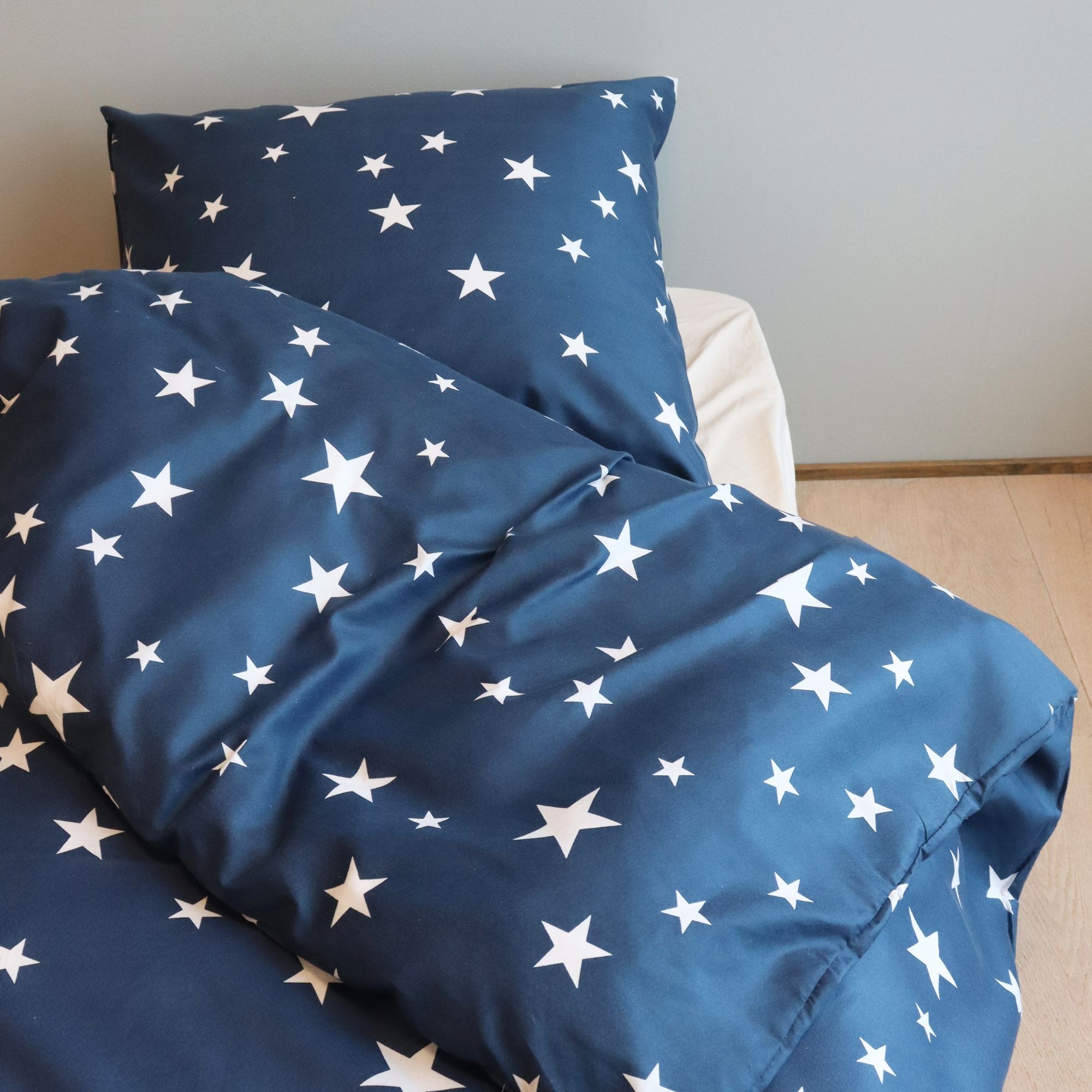 Sengetøj 140x200 cm - Microfiber - Mørkeblåt stjerne print