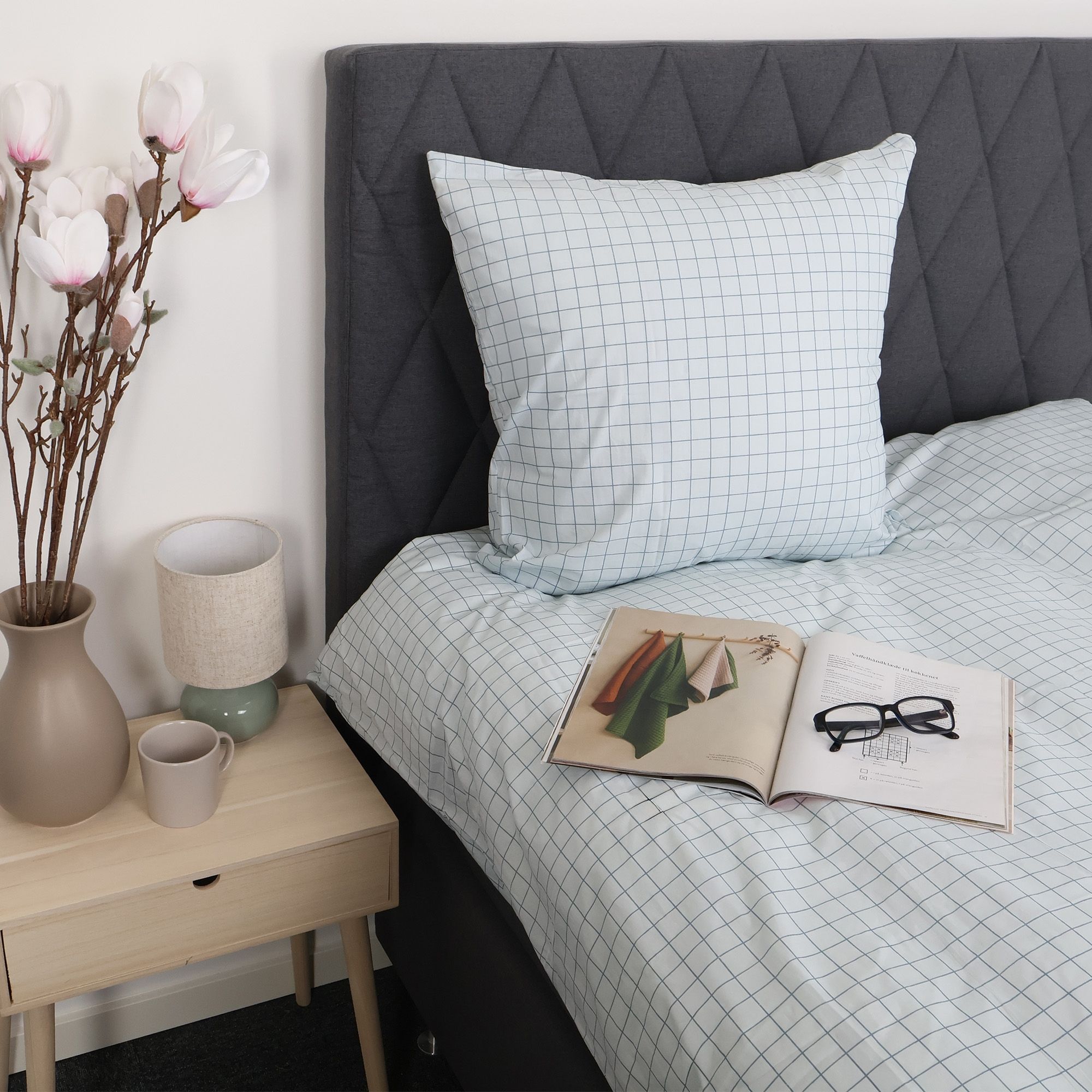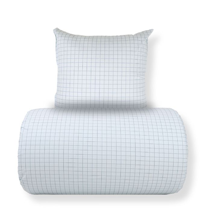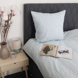 Sengetøj i bomuld med blåt ternet design