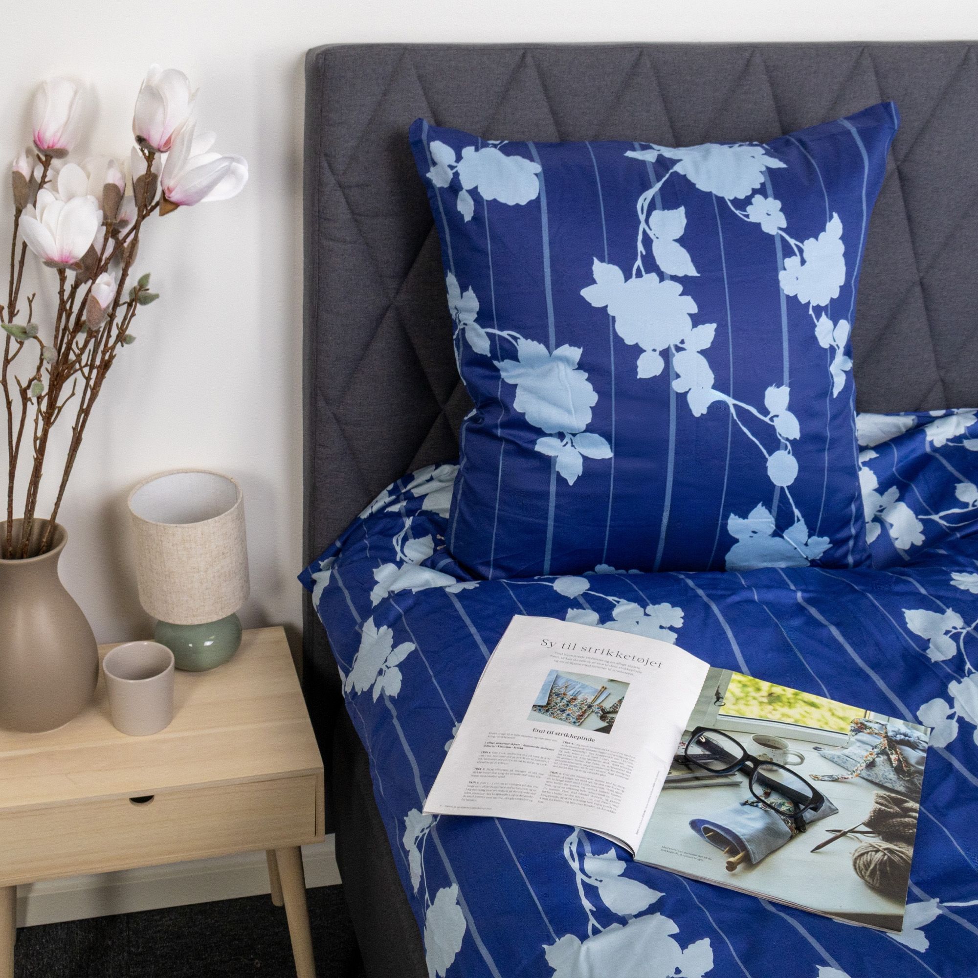 Skab et roligt og eksklusivt udtryk i soveværelset med dette blomstret luksus sengesæt i 100% bomuldssatin fra By Borg. Det stilfulde blomstret og stribet design i blå giver et tidløst look, der passer perfekt ind i både moderne og klassiske soveværelser.