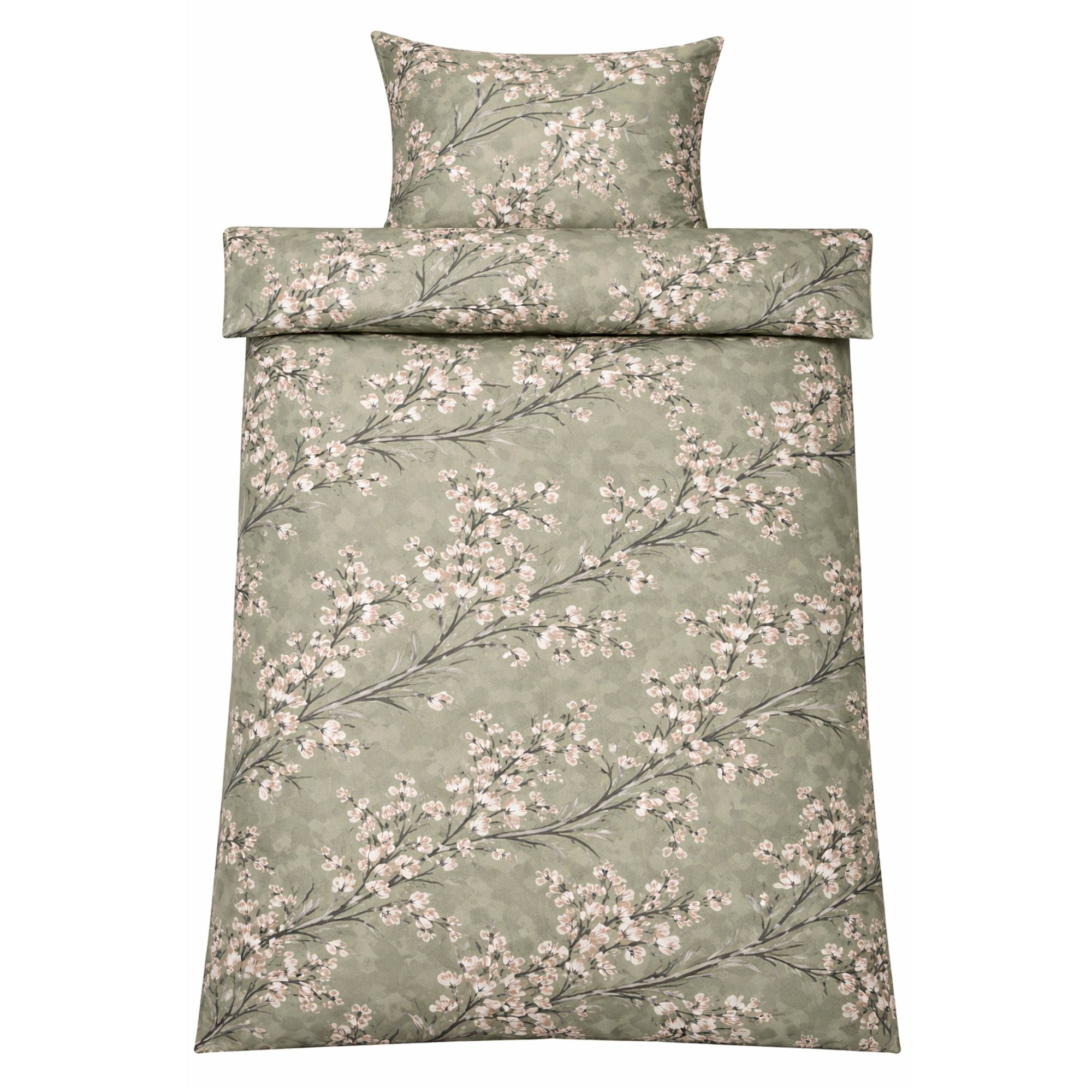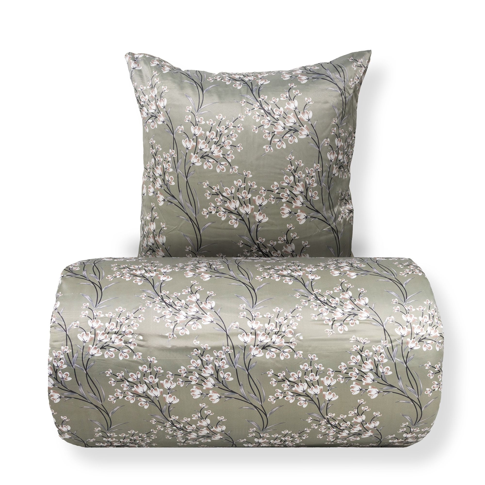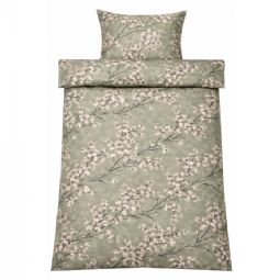 Sengetøj 140x220 cm - Satin - Grønt vendbart blomstret design