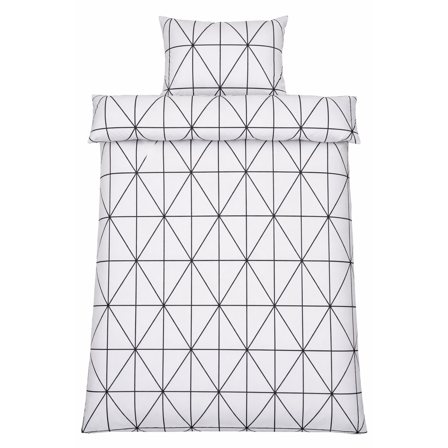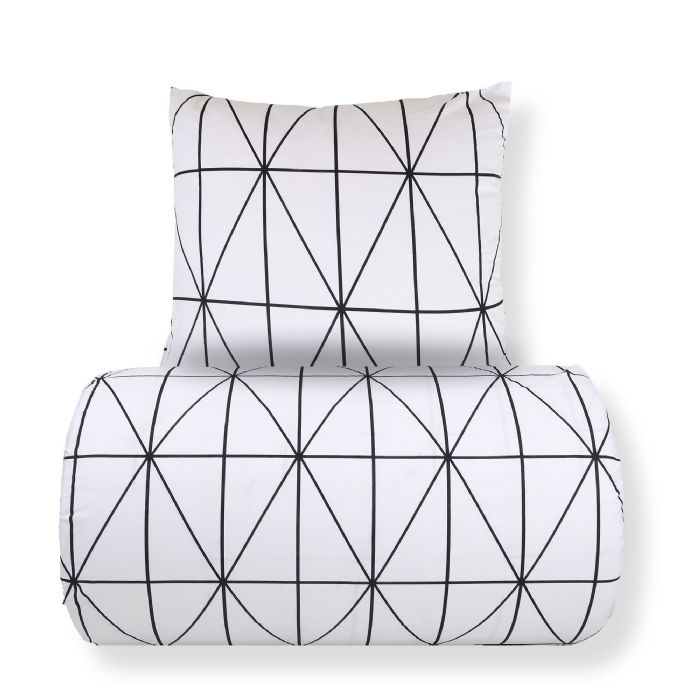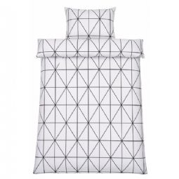 Sengetøj 140x220 cm - 100% bomuld - Hvidt med sorte harlekintern
