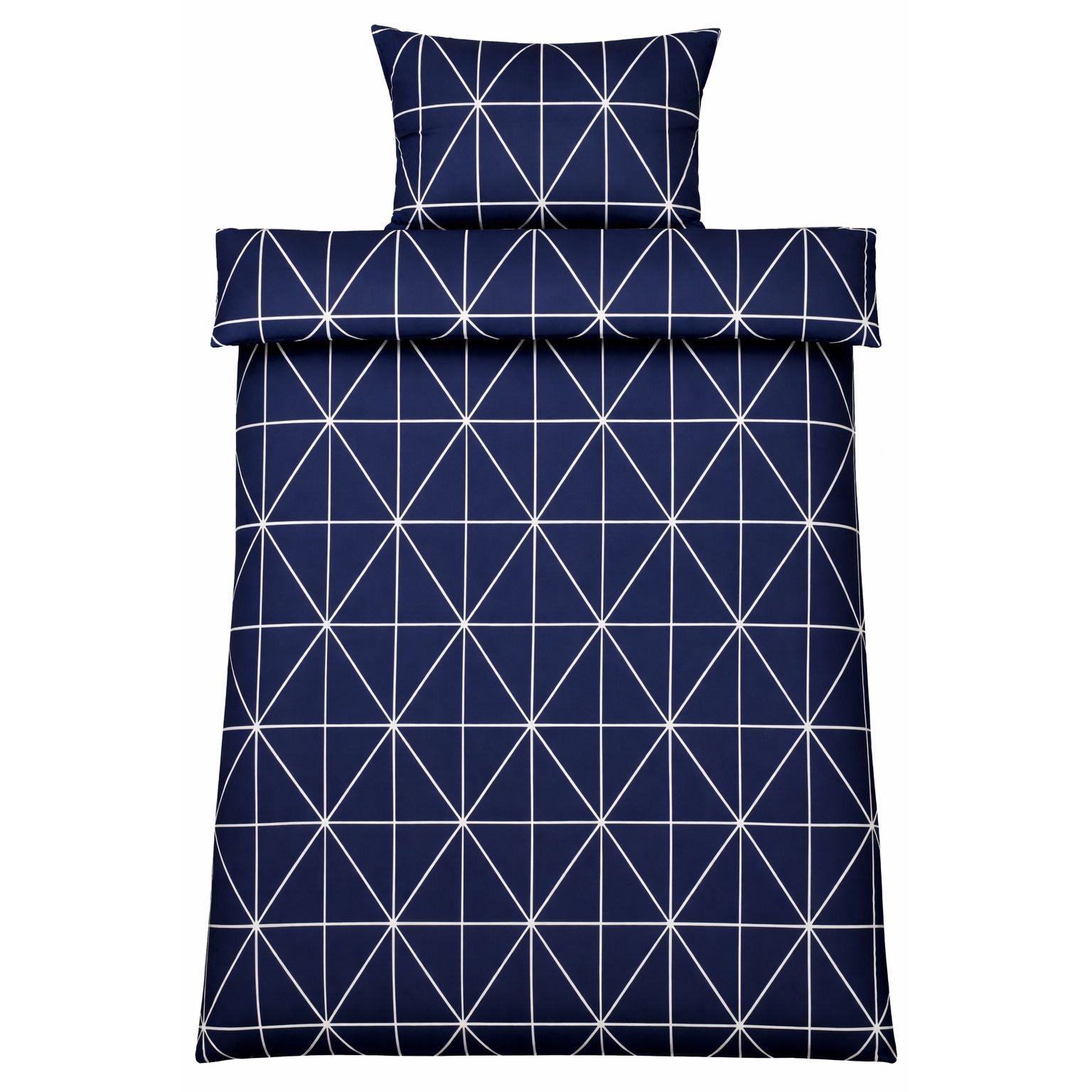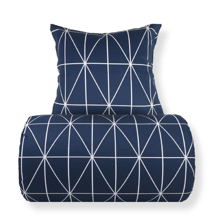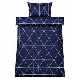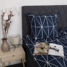 Sengetøj 140x220 cm - 100% bomuld - Blåt med hvide harlekintern