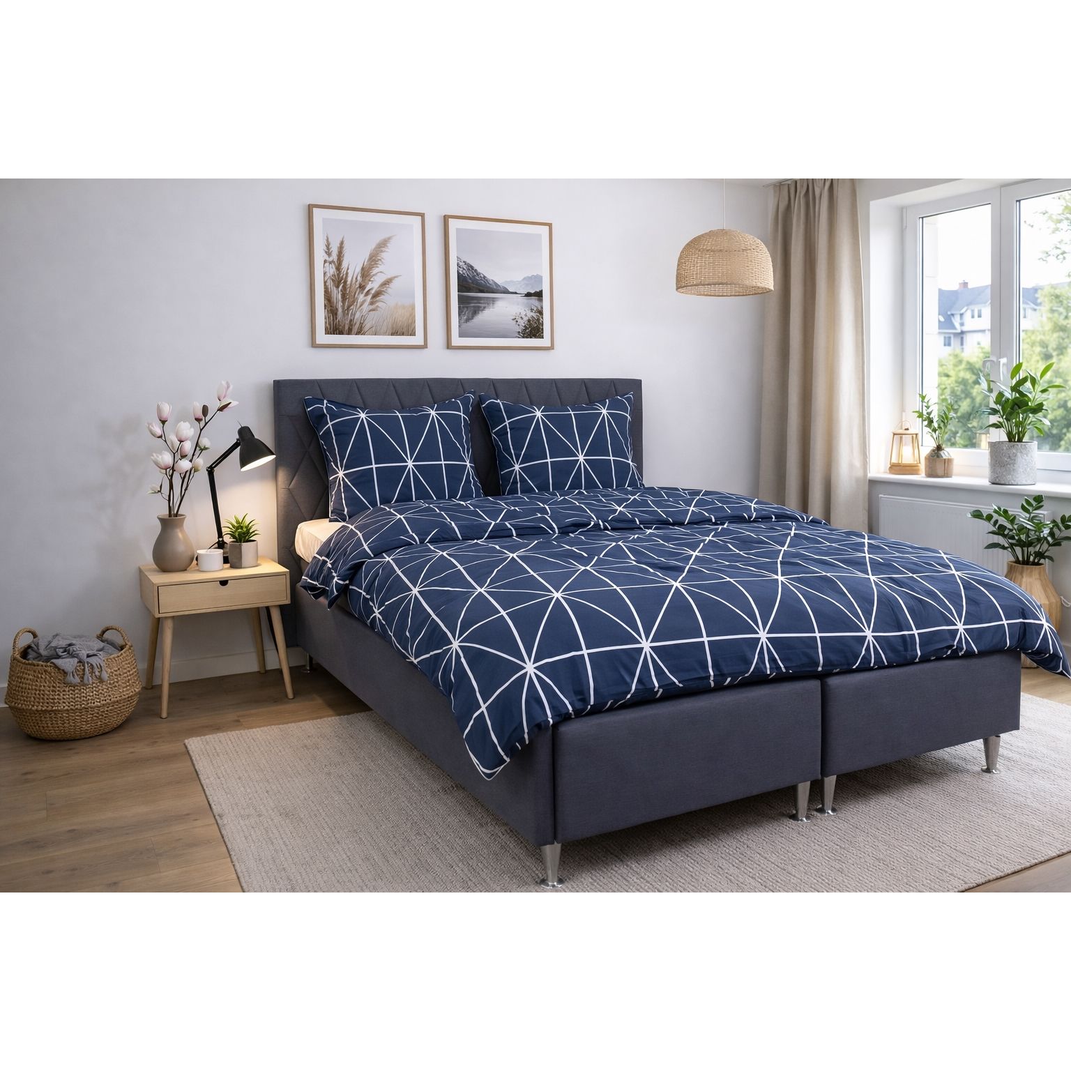 Giv soveværelset et stilrent og roligt udtryk med dette elegante sengetøj i bomuld fra Nordstrand Home. Det klassiske harlekin design i blå skaber en harmonisk atmosfære og passer perfekt ind i både moderne og nordisk indretning.