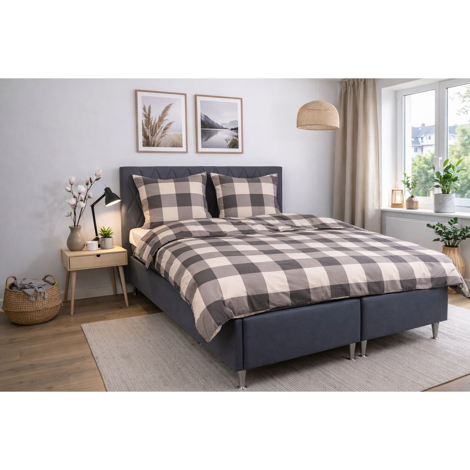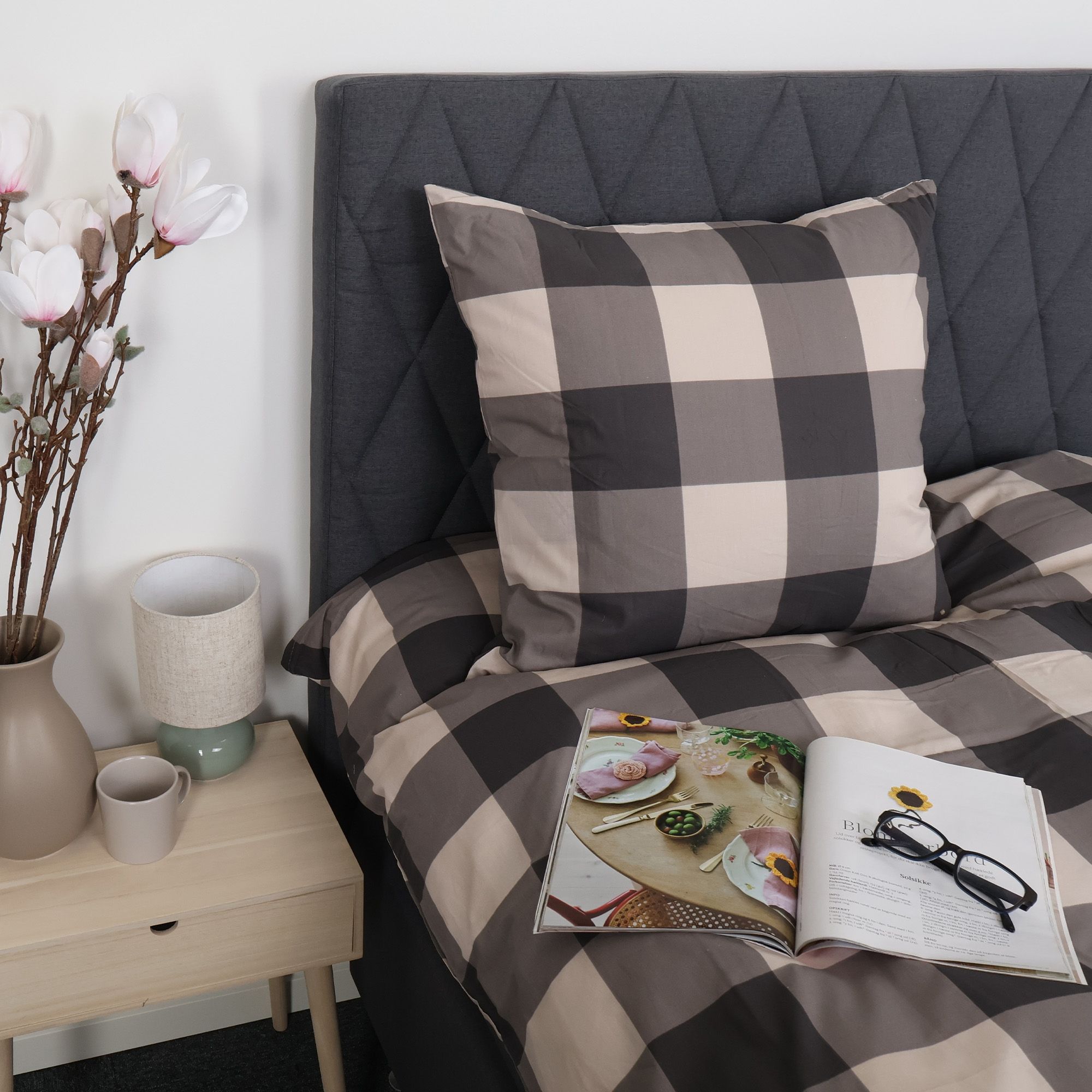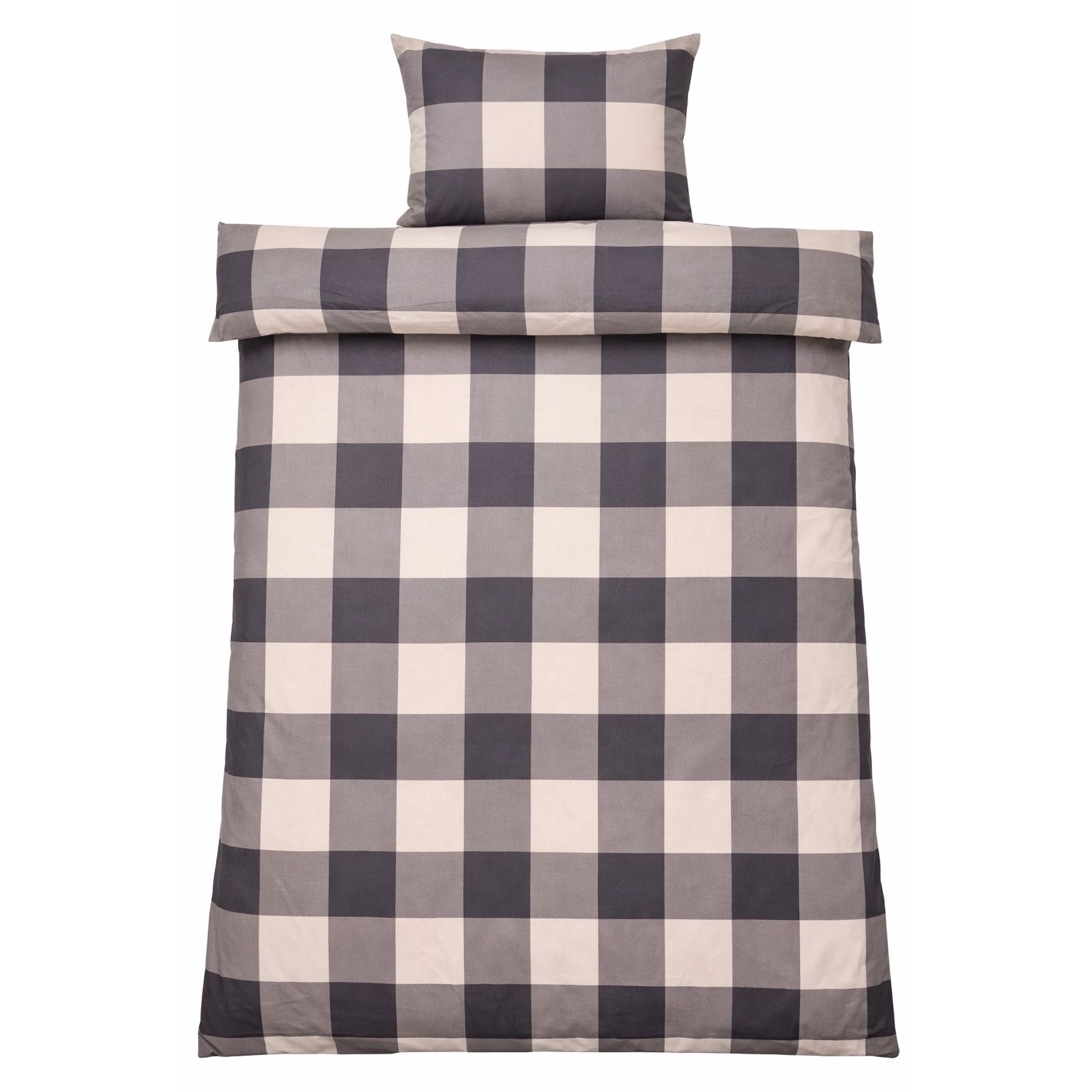 Sengetøj 140x220 cm - 100% bomuld - Grå tern