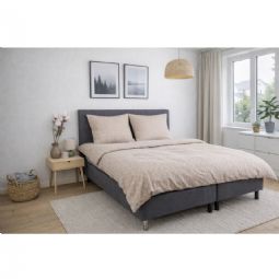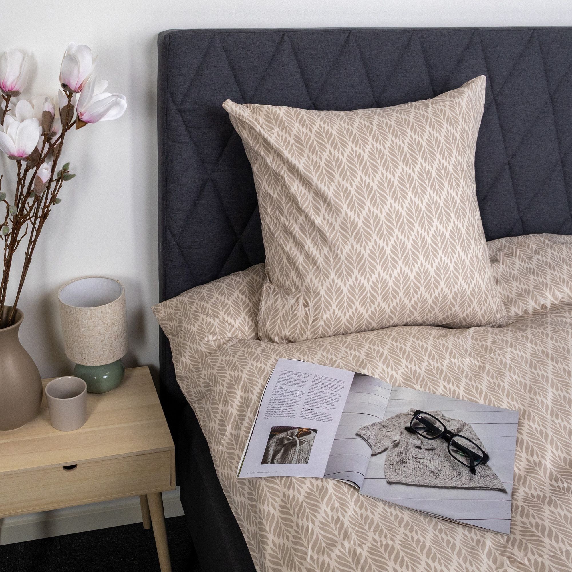 Både dynebetræk og pudebetræk lukkes med lynlås, som sikrer, at dynen og puden bliver på plads, og gør det nemt at skifte sengetøj. Det sandfarvet mønster skaber et roligt og dekorativt udtryk, der passer ind i både moderne og klassiske soveværelser.