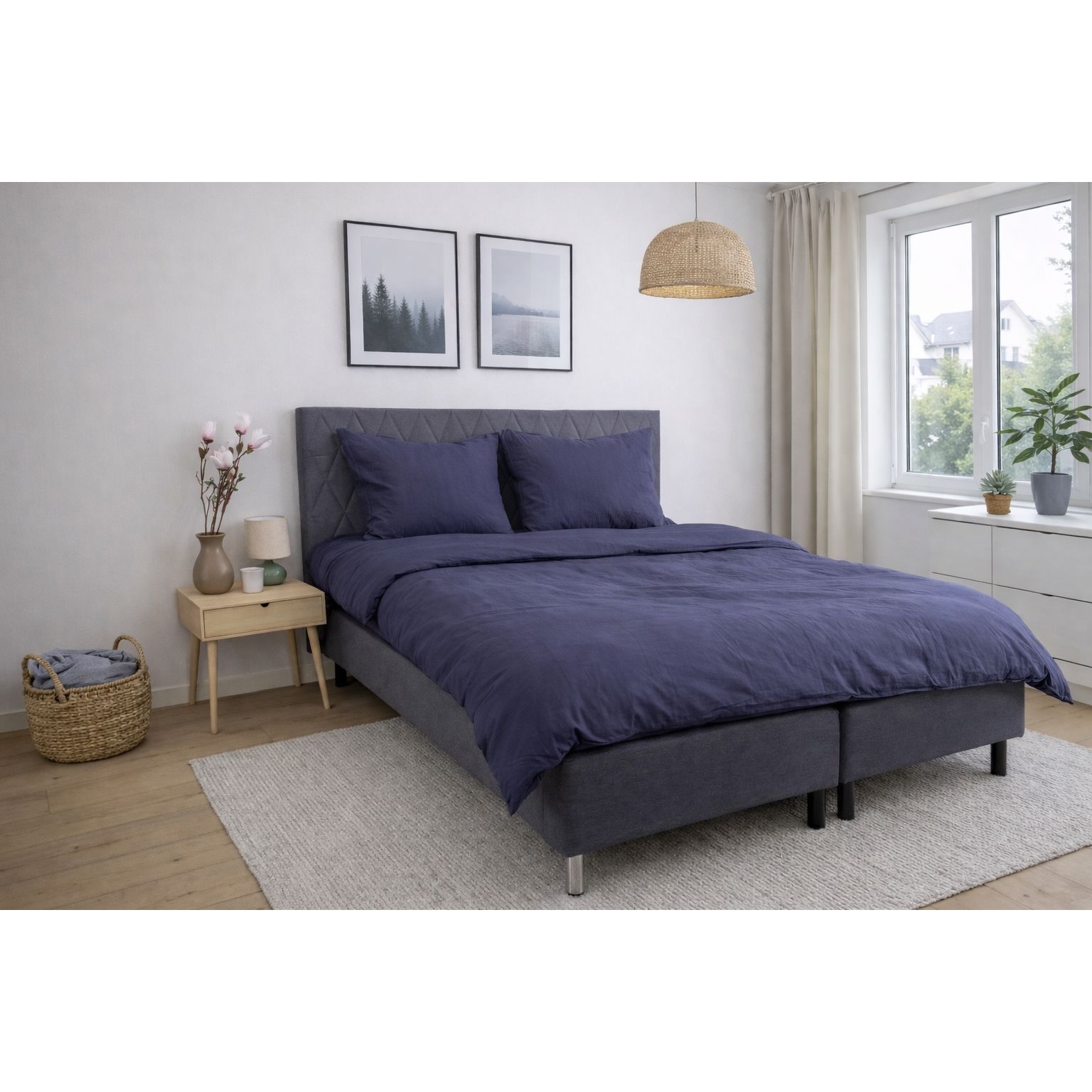 Sengetøj 140x220 cm - Microfiber - Ensfarvet mørkeblå