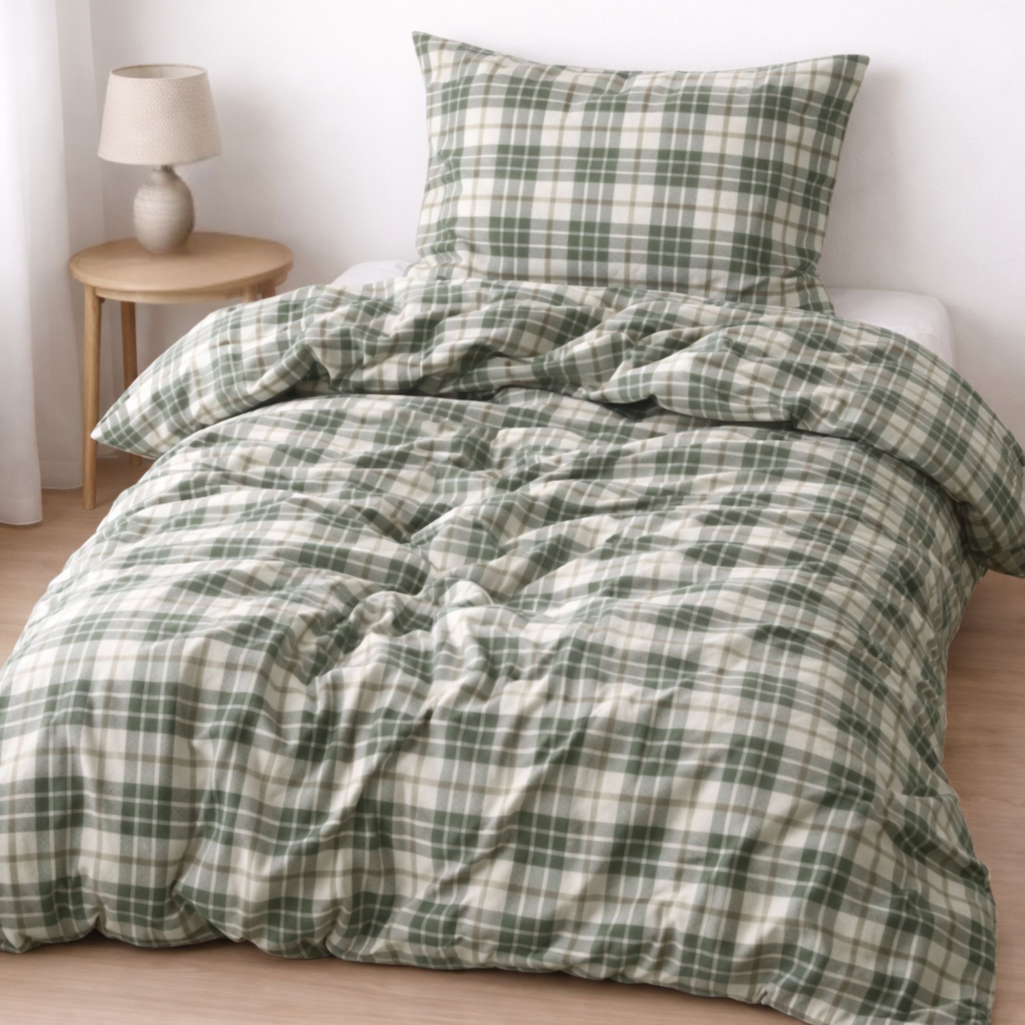 Sengetøj 140x220 cm - 100% bomuldsflonel - Høie of Scandinavia - Lukas Grøn