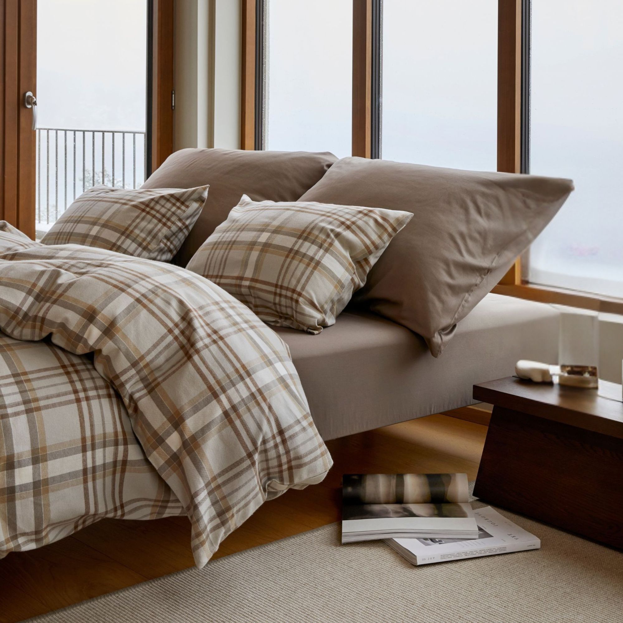 Sengetøj 140x220 cm - 100% bomuldsflonel - Høie of Scandinavia - Richard Beige