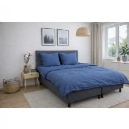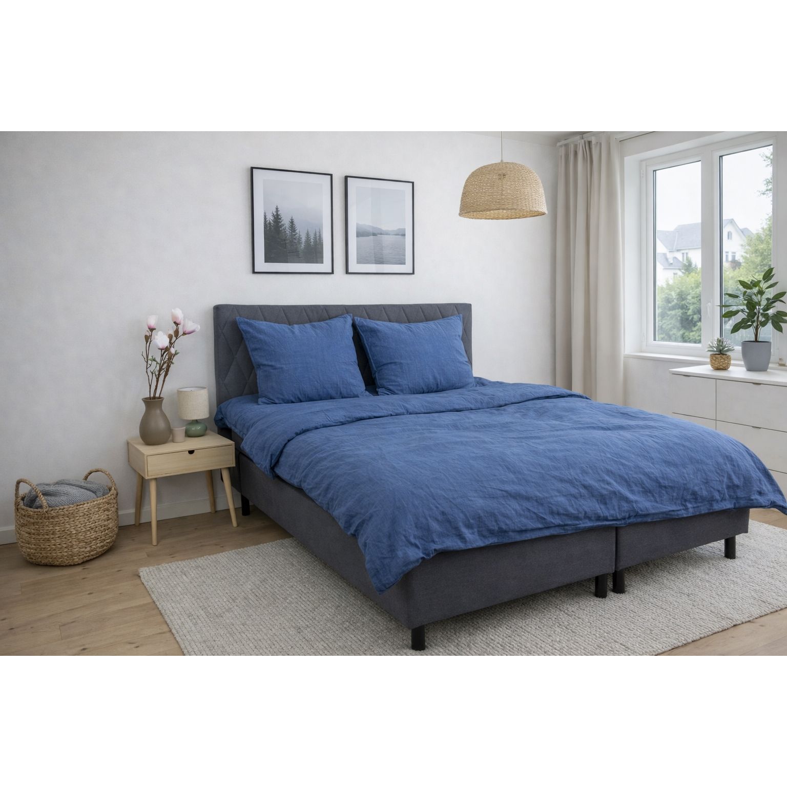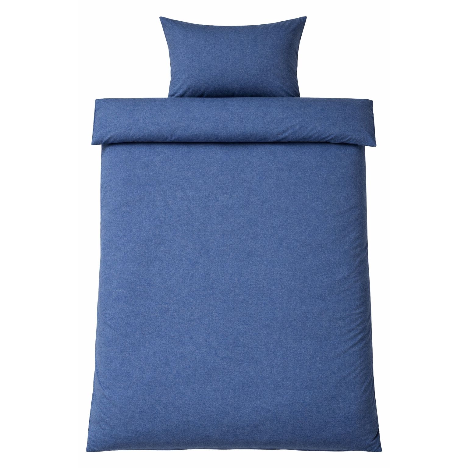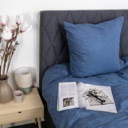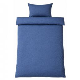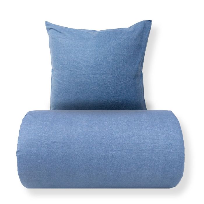 Dyne- og pudebetræk lukkes begge med indvendig lynlås, som gør det nemt at skifte sengetøj og sikrer, at dynen og puden bliver på plads hele natten. Den blå melerede farve skaber et roligt og naturligt udtryk, der passer godt ind i både moderne og klassiske soveværelser.