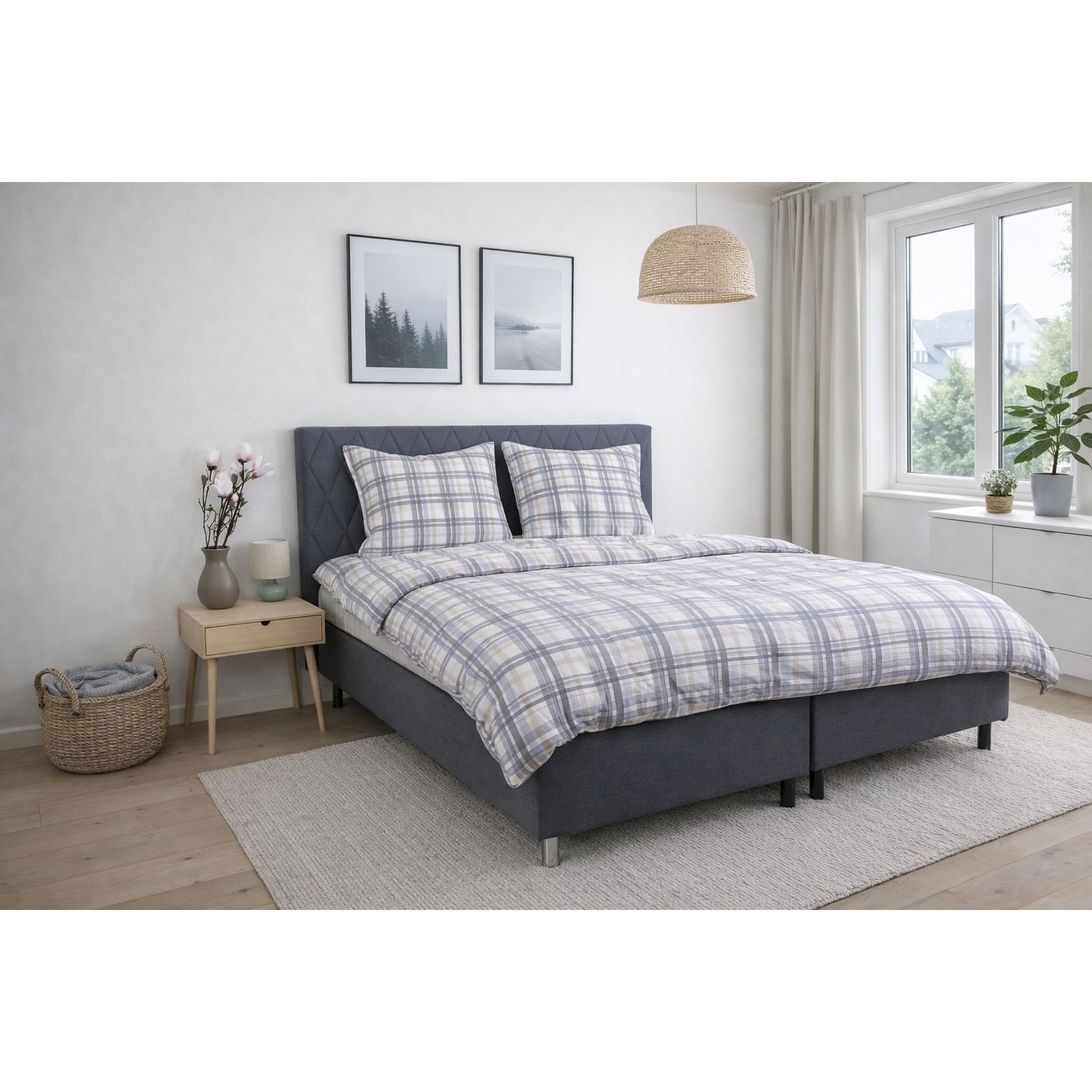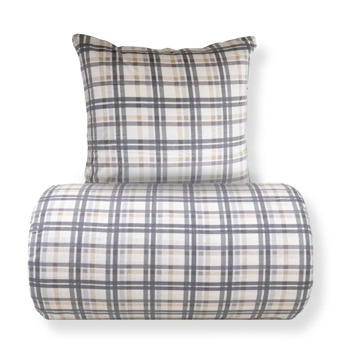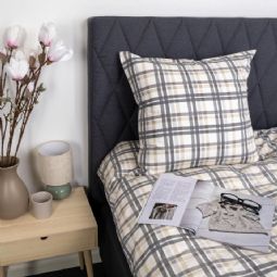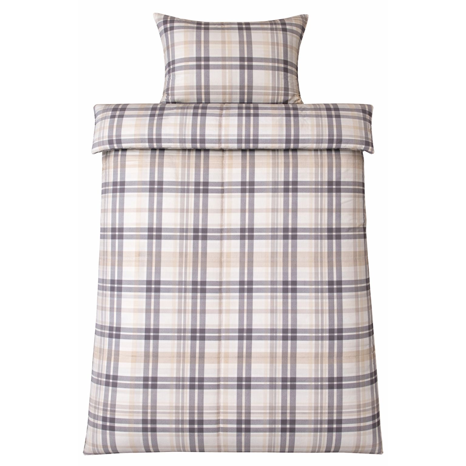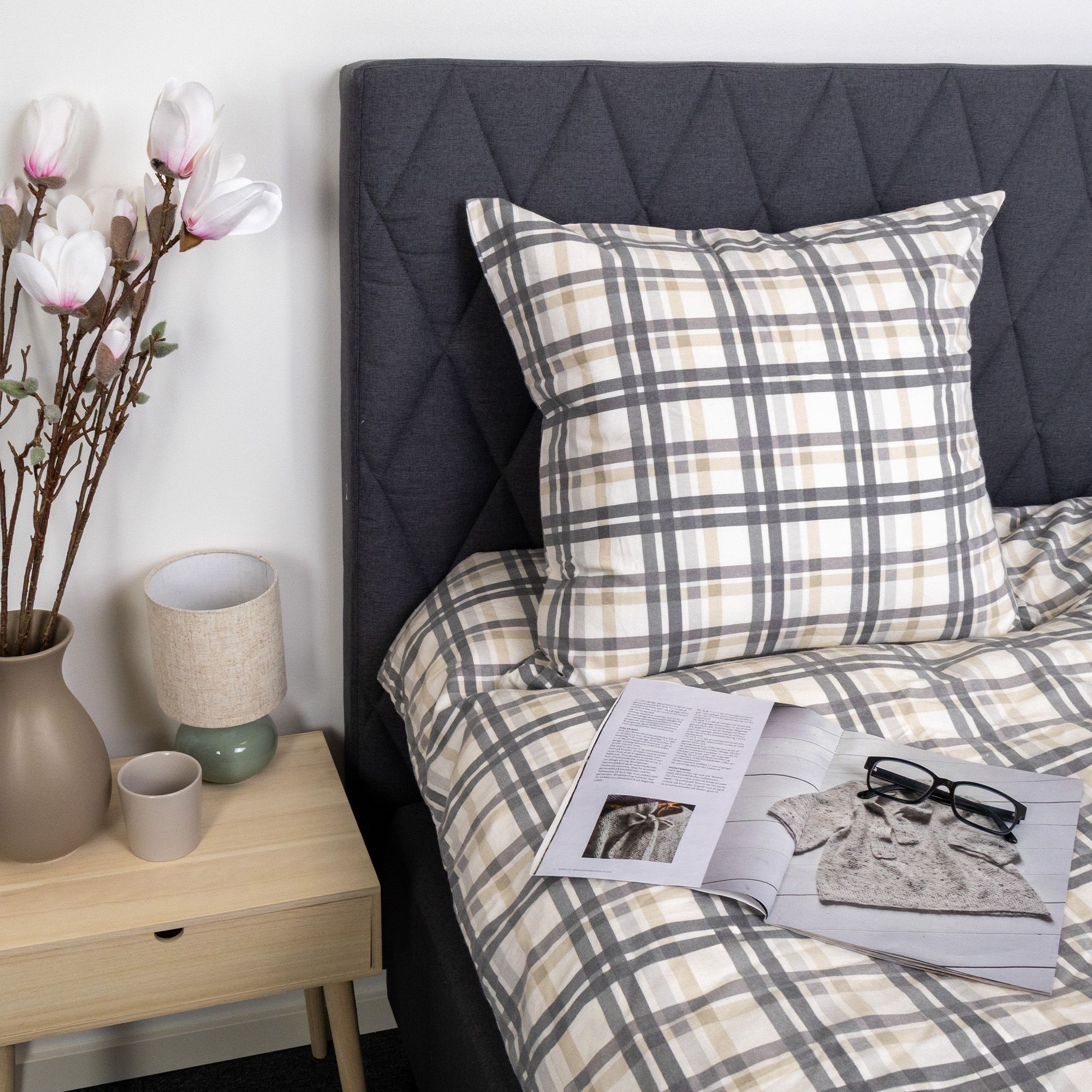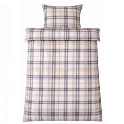 Sengetøj - Bomulds flonel - Beige med blå tern