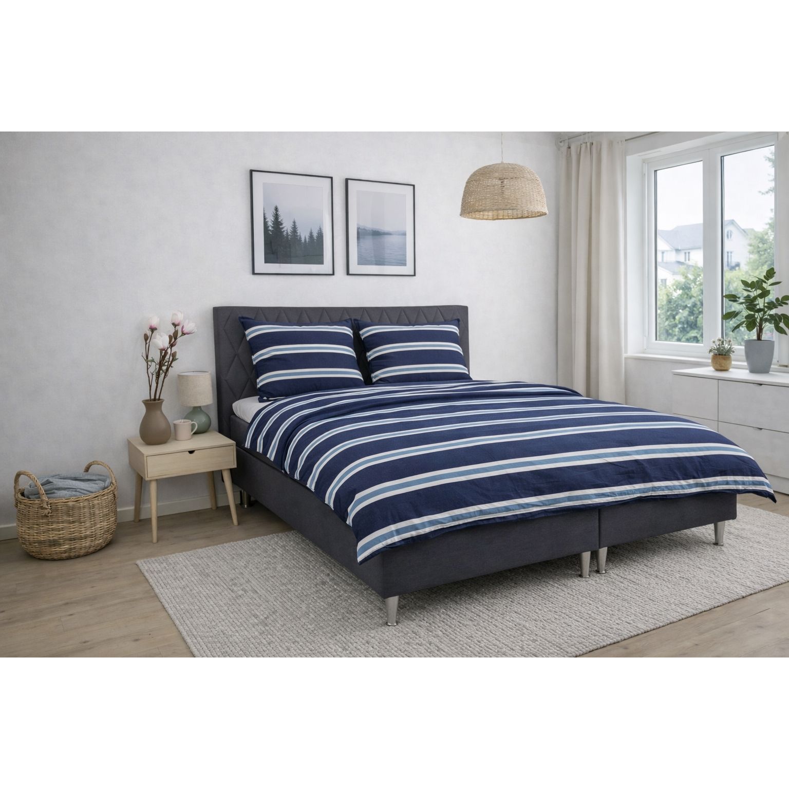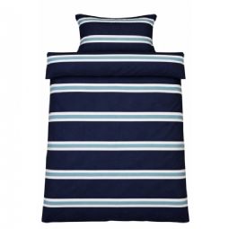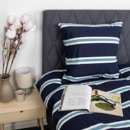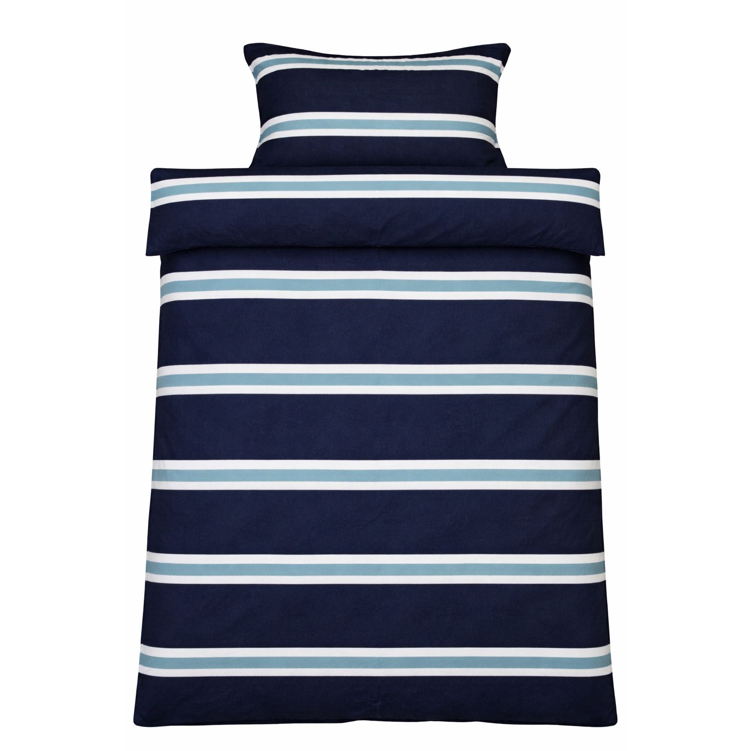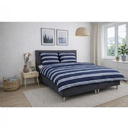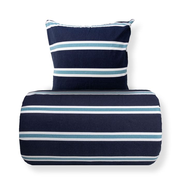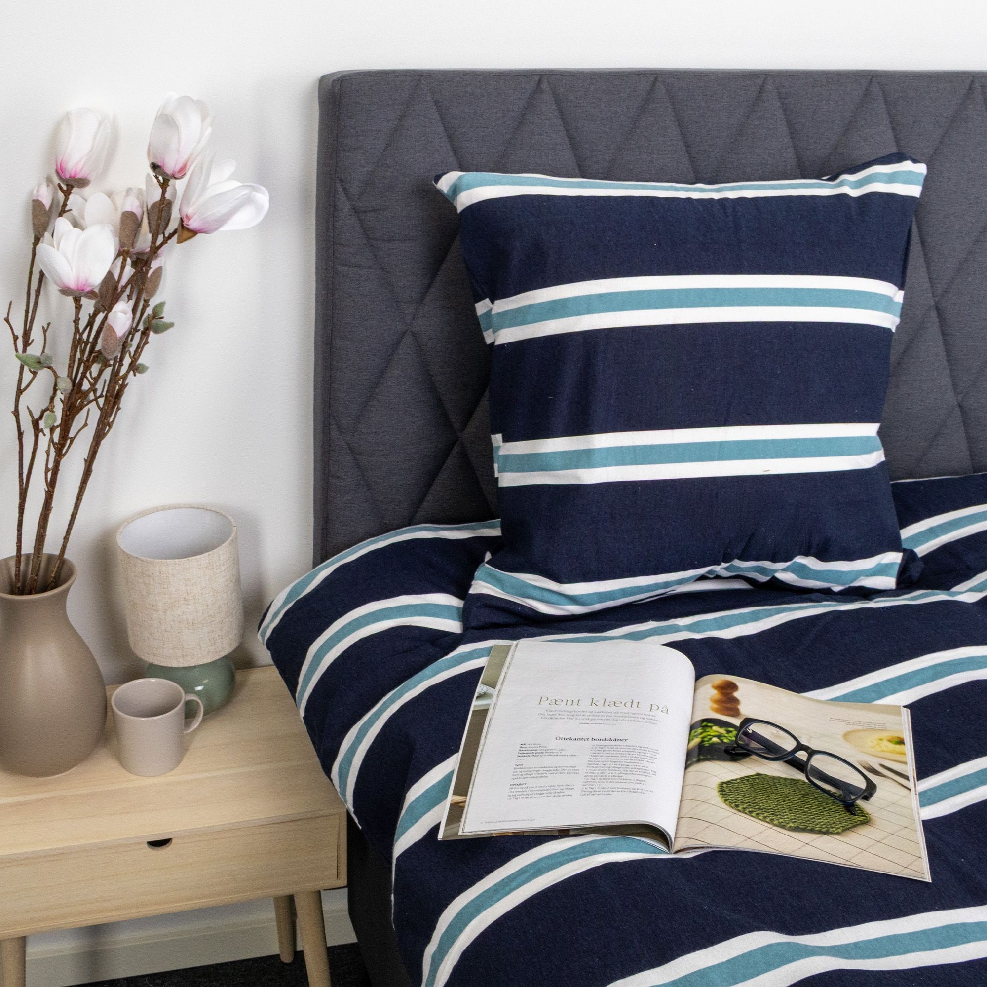 Sengetøj - Bomulds flonel - Mørkeblå med striber