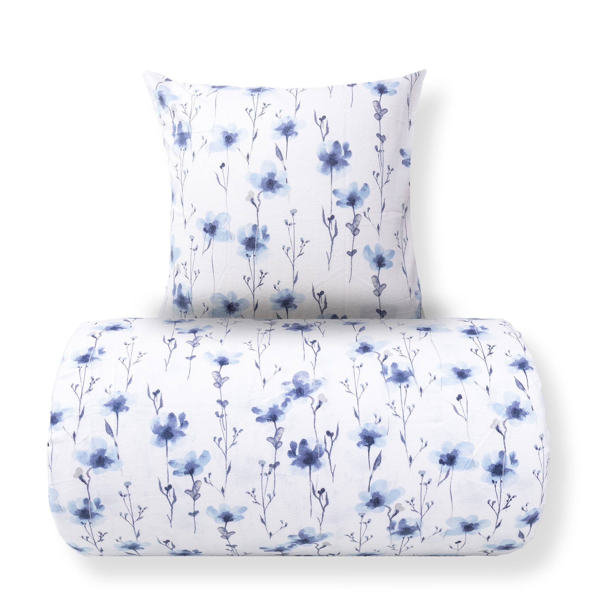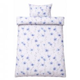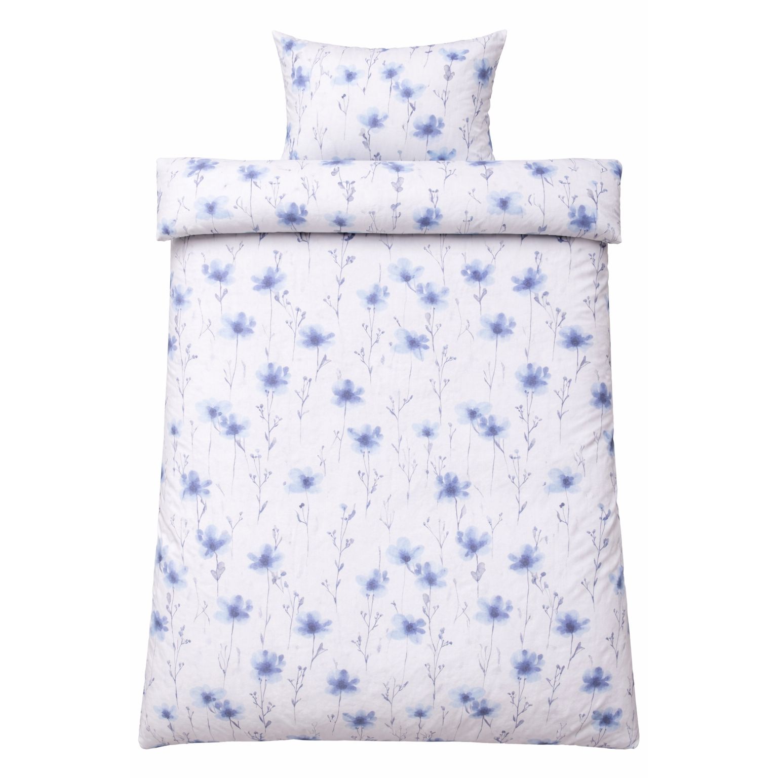 Sengetøj - Bomulds flonel - Hvid med blå blomster
