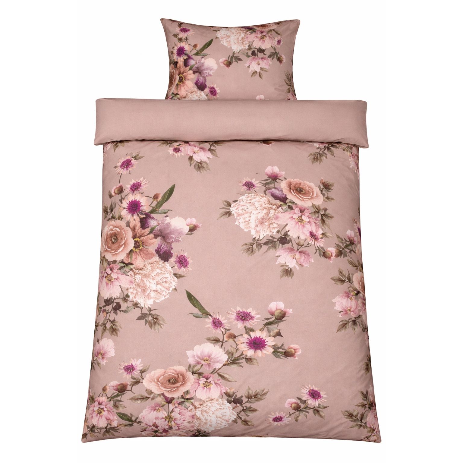 Sengetøj - Bomuldssatin - Vendbart rosa blomster sengetøj