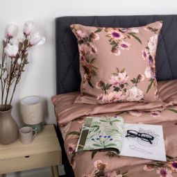 Vendbart sengetøj med digital printet blomster design i 100% bomuldssatin