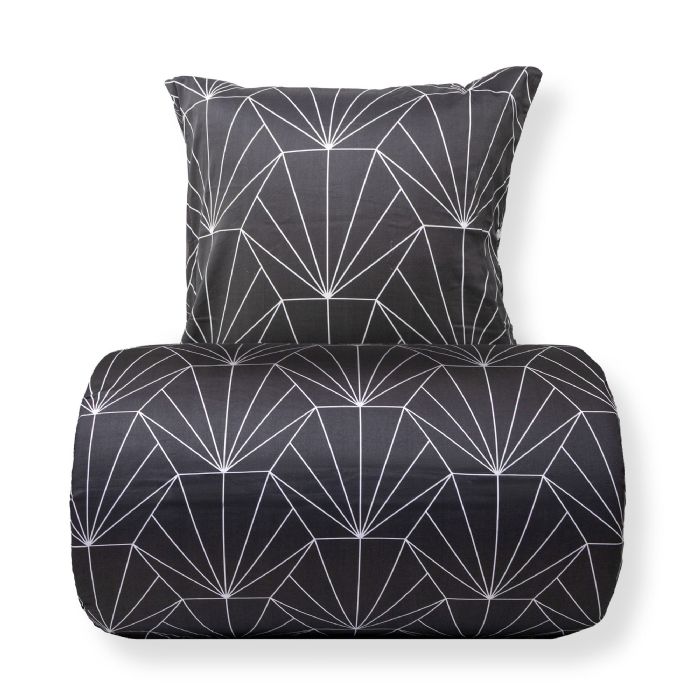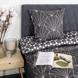 Skab en stemningsfuld og elegant atmosfære i soveværelset med dette smukke sengesæt i 100% bomuldssatin. Sengetøjet kombinerer to forskellige hexagonprint, så du nemt kan skifte udtryk i soveværelset ved blot at vende sengetøjet.