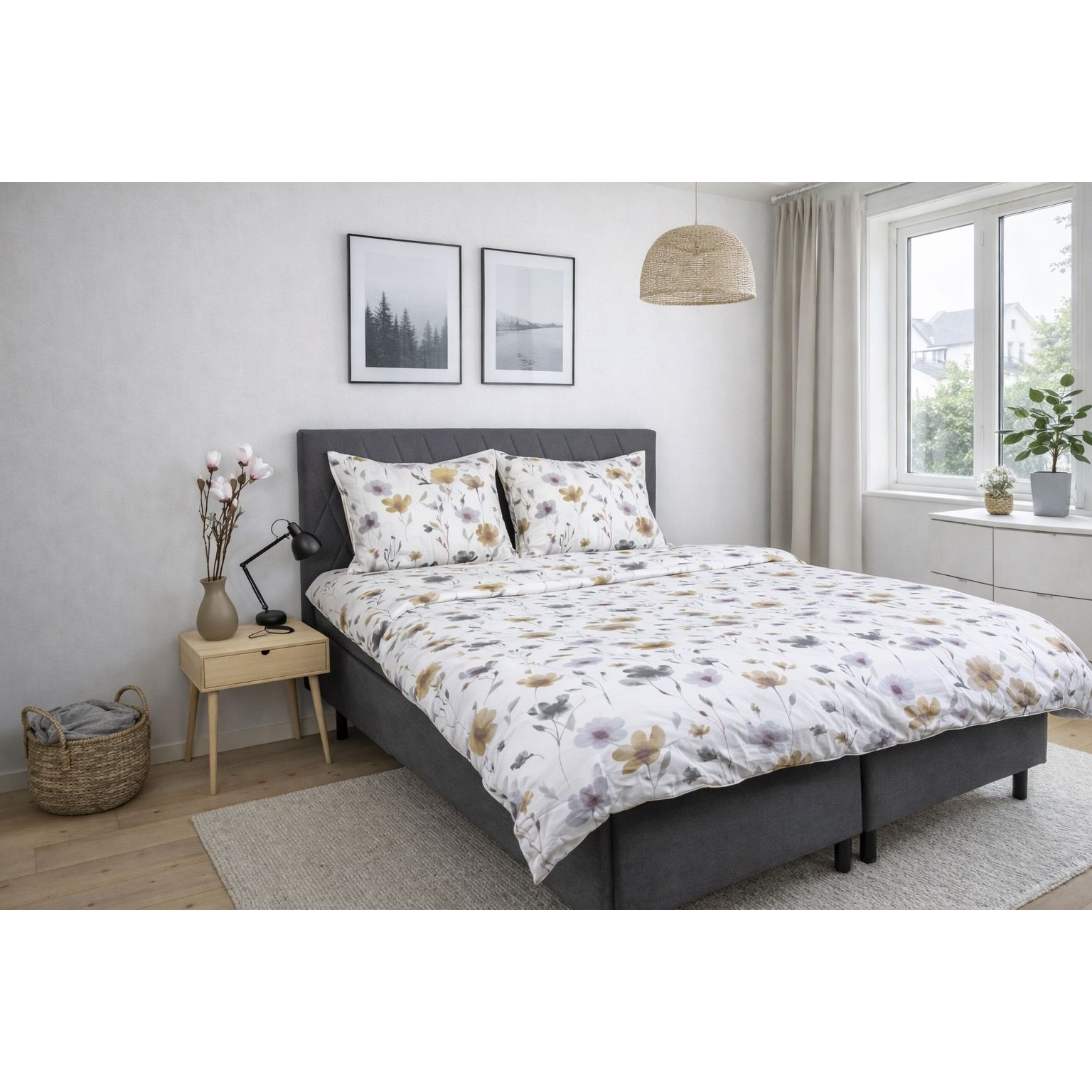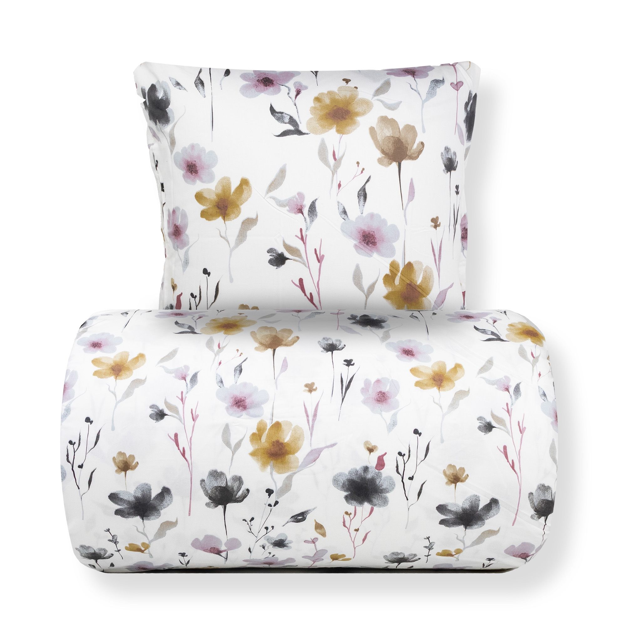 Sengetøj i 100% bomuldssatin - blomster print