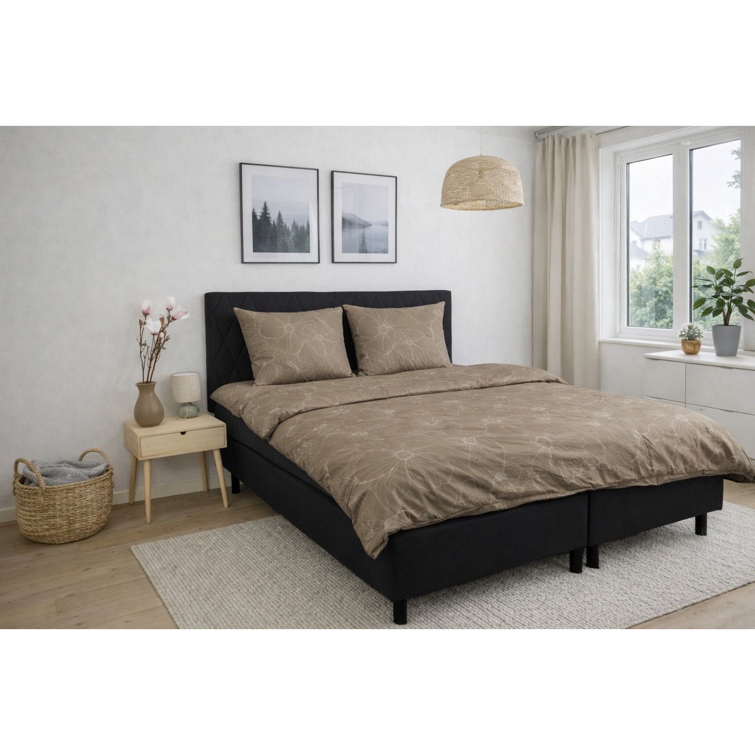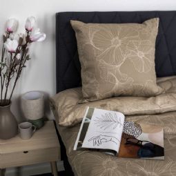 Det vendbare design giver dig to forskellige looks i ét sengesæt. Forsiden har et elegant blomsterprint i en lys sandfarve, mens bagsiden er mørk sand. Det gør sengetøjet nemt at kombinere med forskellige farver, puder og plaider og giver større fleksibilitet i indretningen.