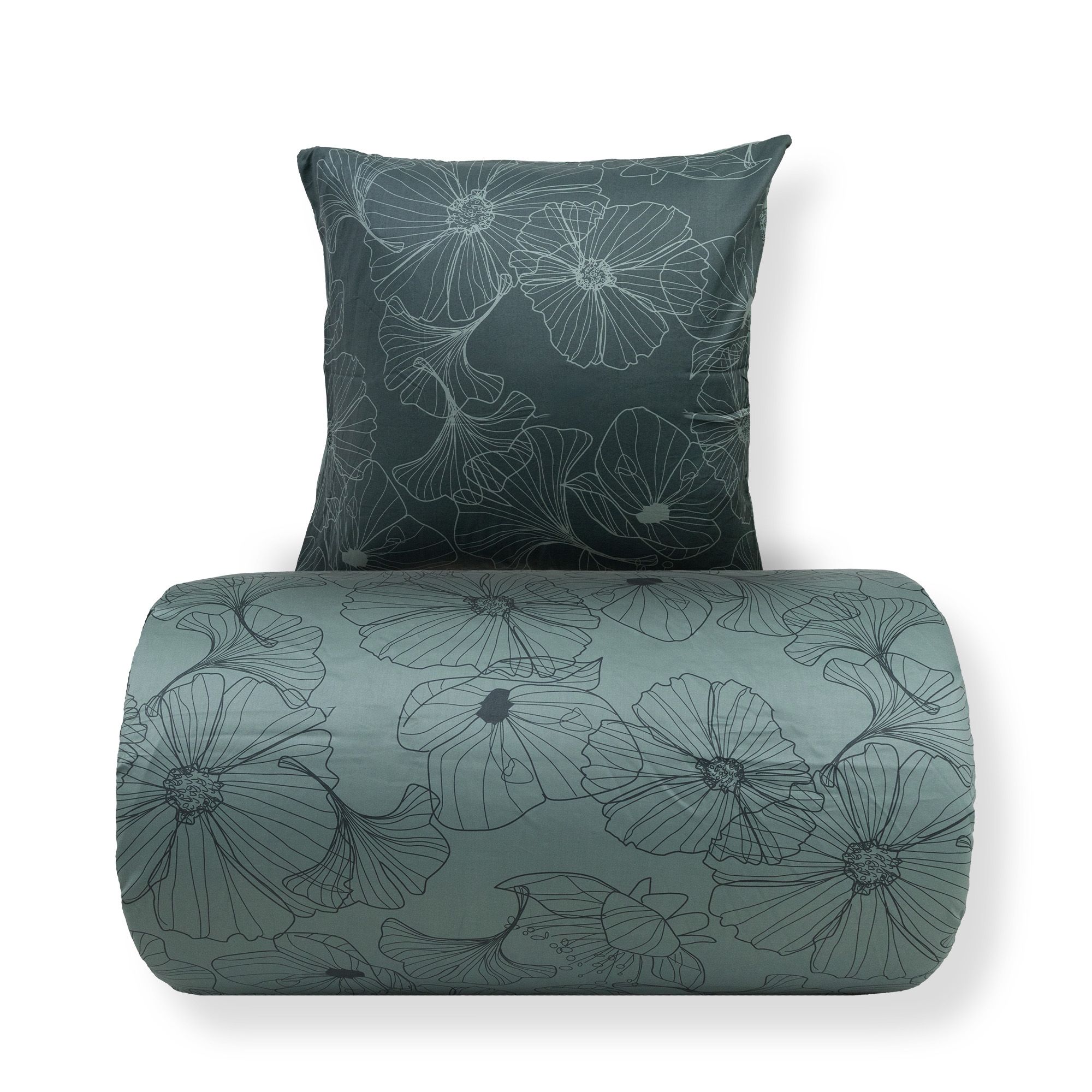 Sengetøj - Bomuldssatin - Big Flower green - Vendbart blomster print