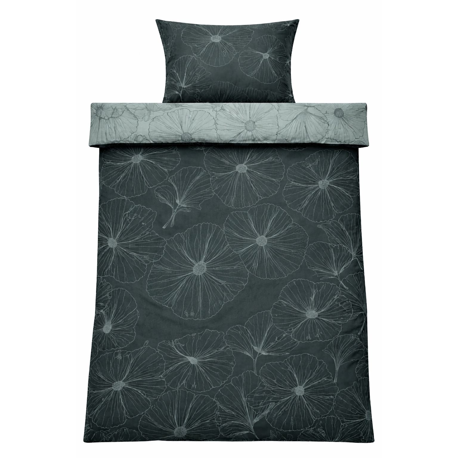 Sengetøj i 100% bomuldssatin - vendbart design med blomster