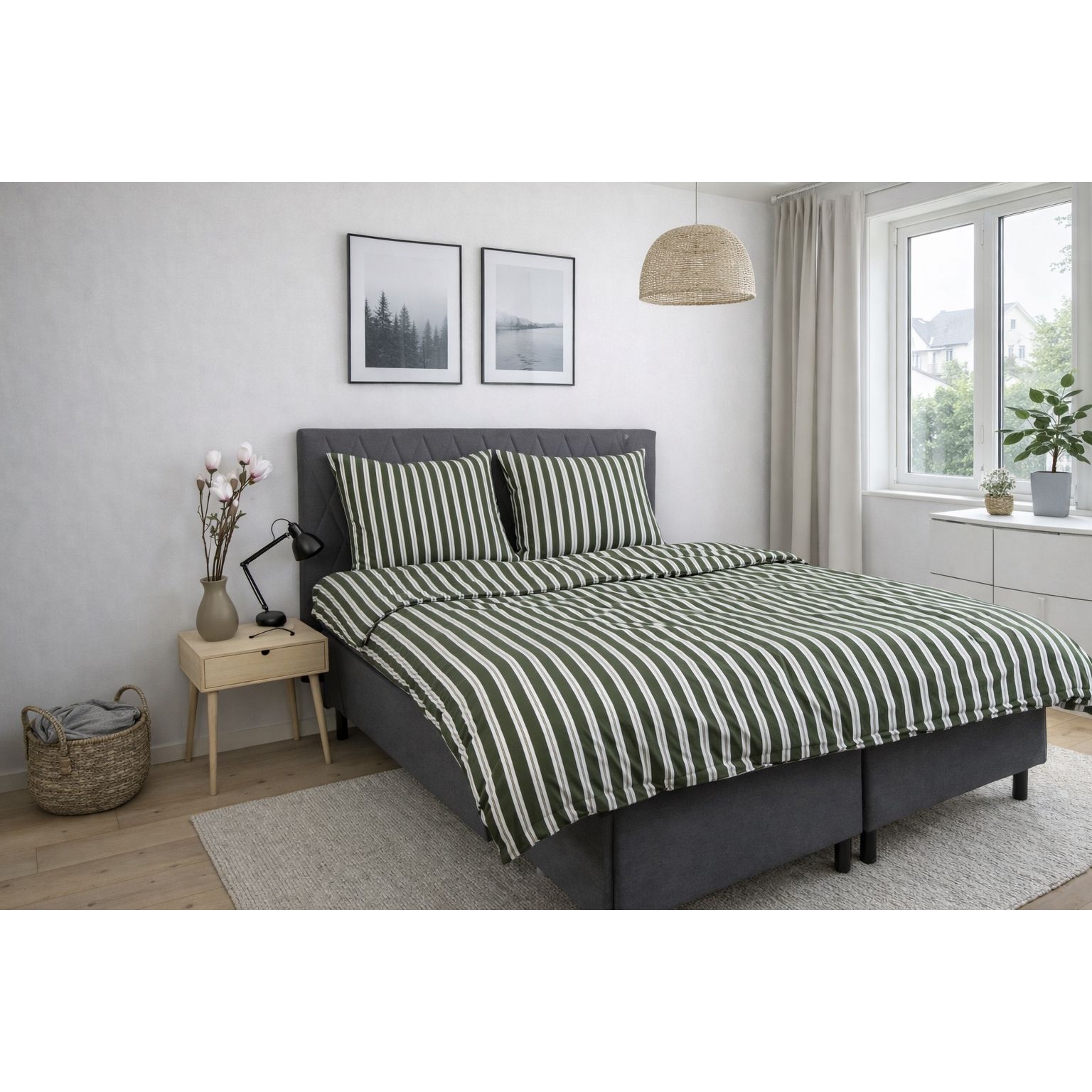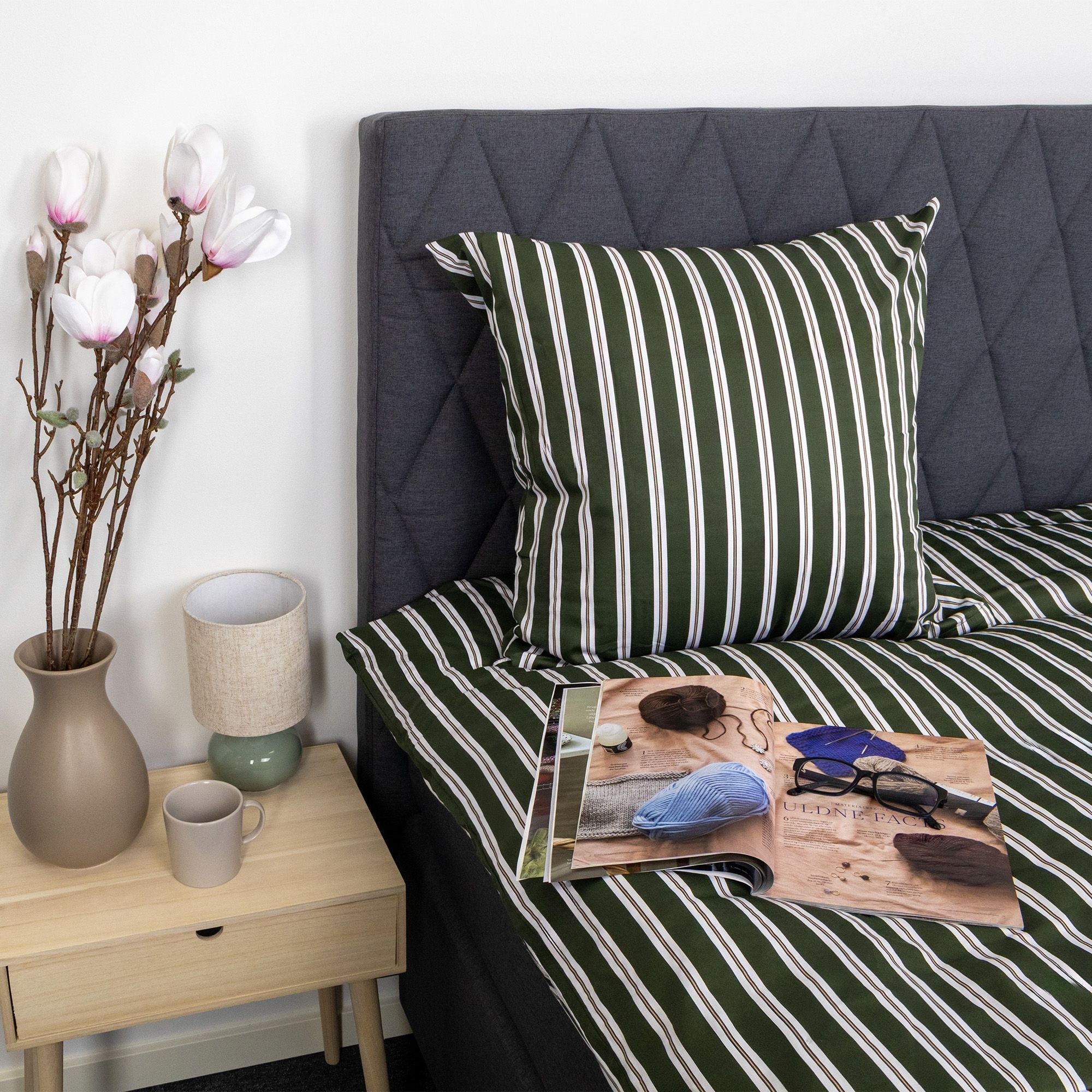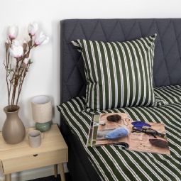 Sengetøj - Bomuldssatin - Grønt stribet print