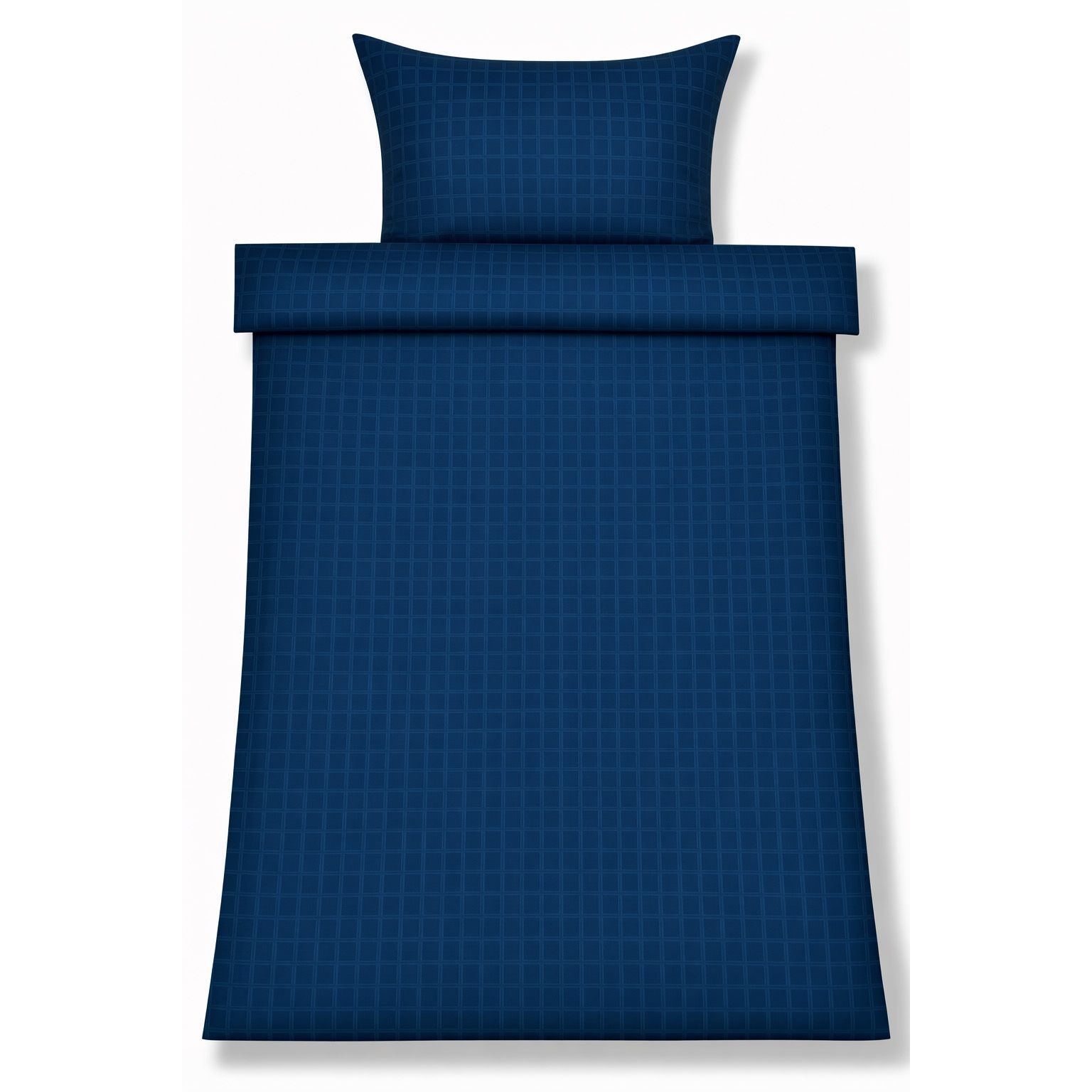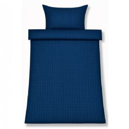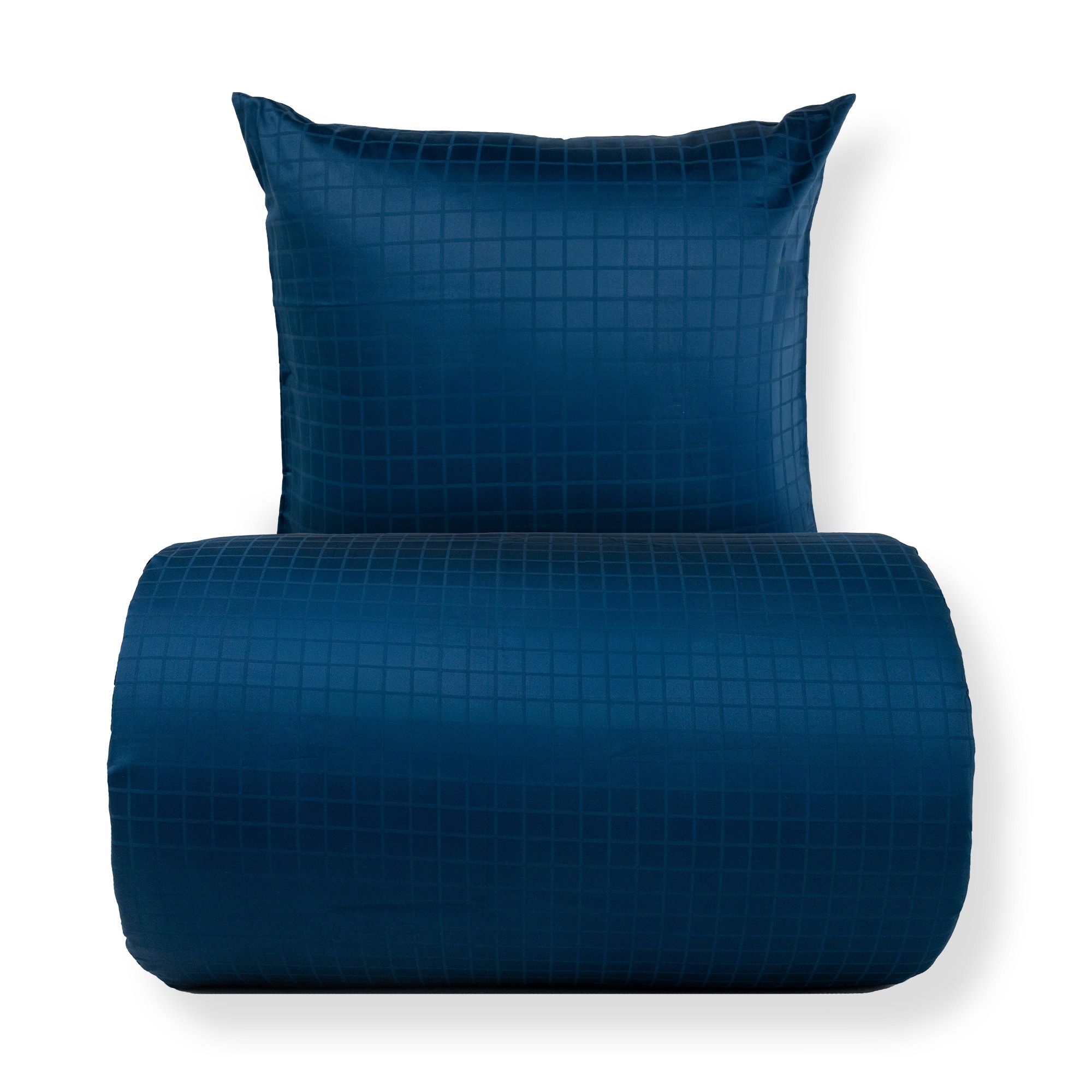 Sengetøj - GOTS certificeret økologisk bomuldssatin - Blå jacquardvævede tern