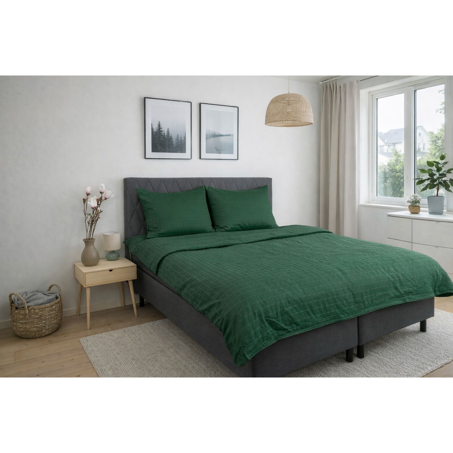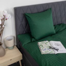 Sengetøj - GOTS certificeret økologisk bomuldssatin - Grønne jacquardvævede tern