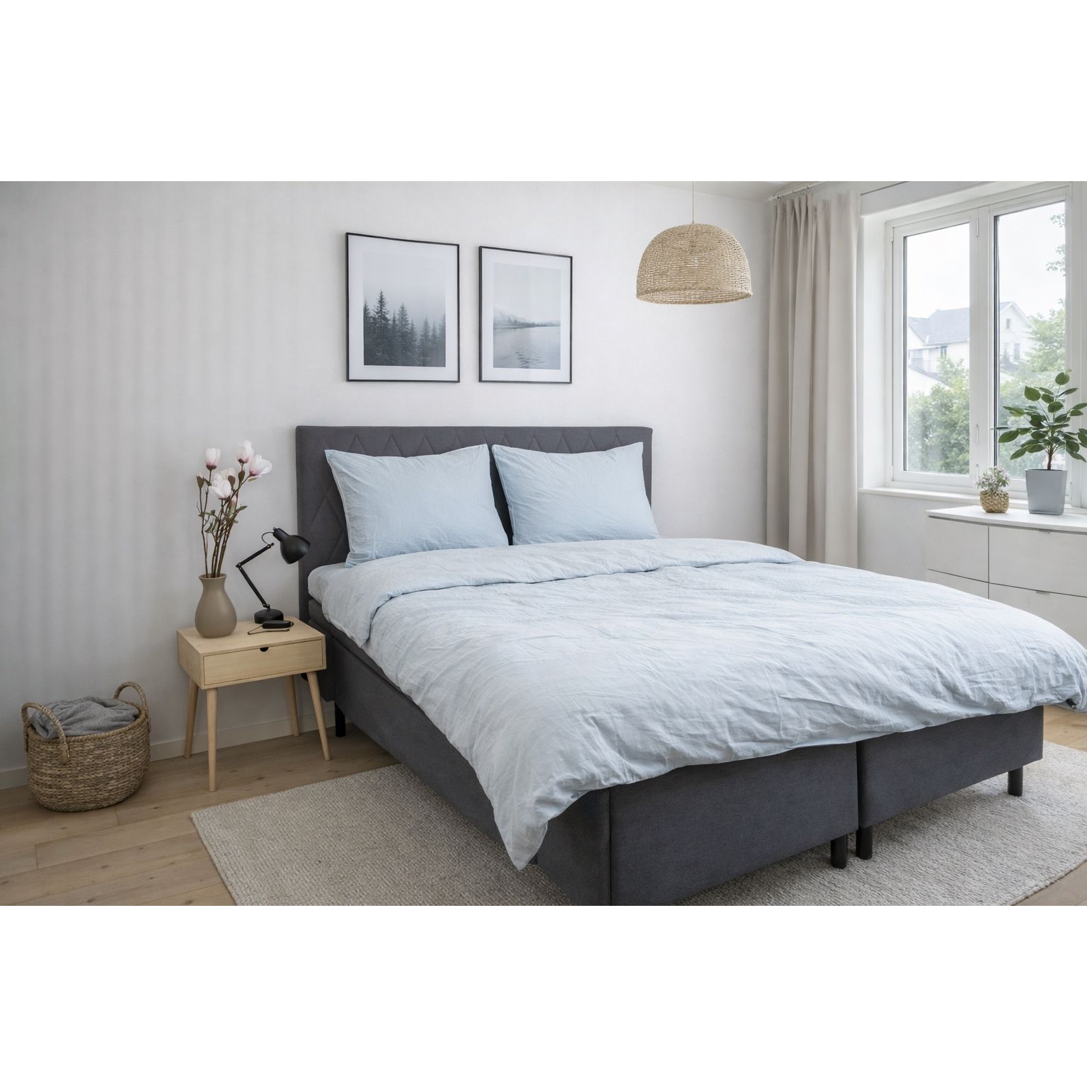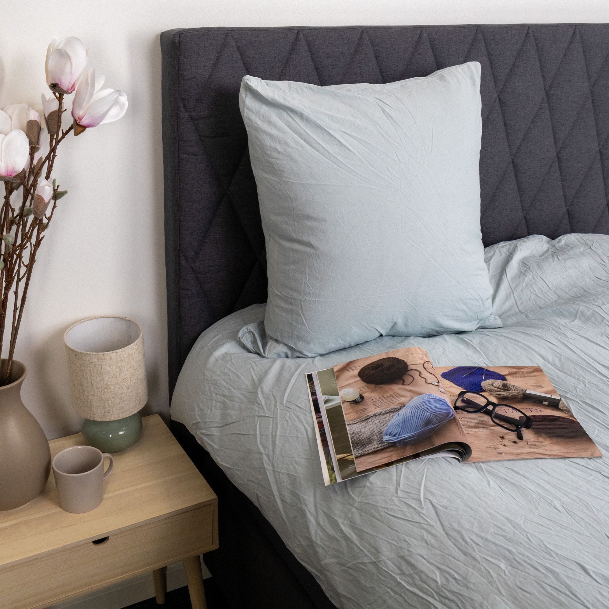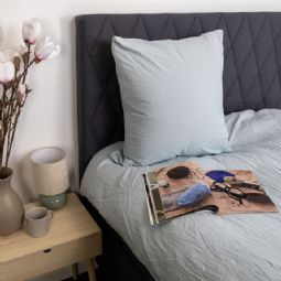 Dyne- og pudebetræk er lukkes med indvendig skjult lynlås, som giver et stilrent udtryk og gør det nemt at skifte sengetøj. Den blå nuance og det ensfarvede design gør sengesættet let at kombinere med både lyse og mørke elementer i soveværelset.