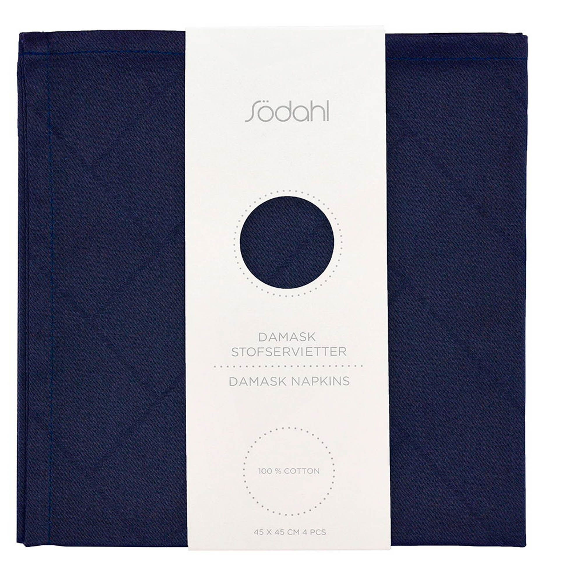 Stofservietter 4 stk 45x45 cm - 100% damaskvævet bomuld - 4-pak - Södahl Tiles - Blå