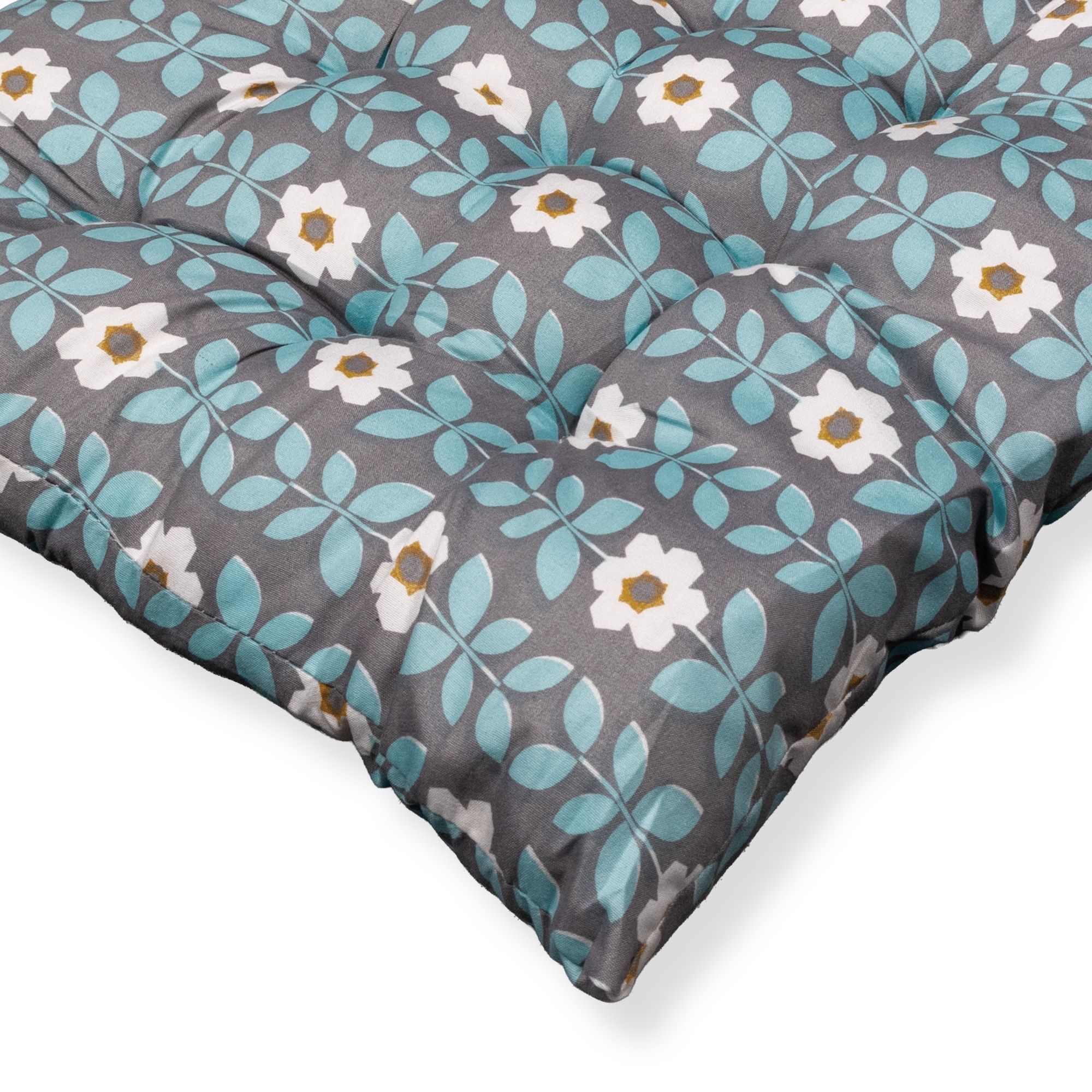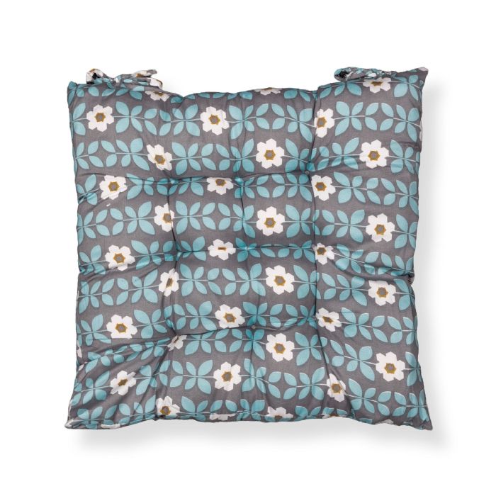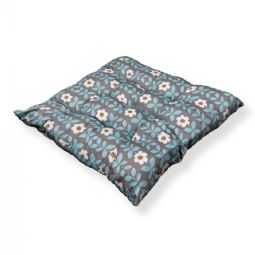 Stolehynde - 35x35x6 cm - Grå havehynde med blå og hvide blomster - Blød komfort hynde