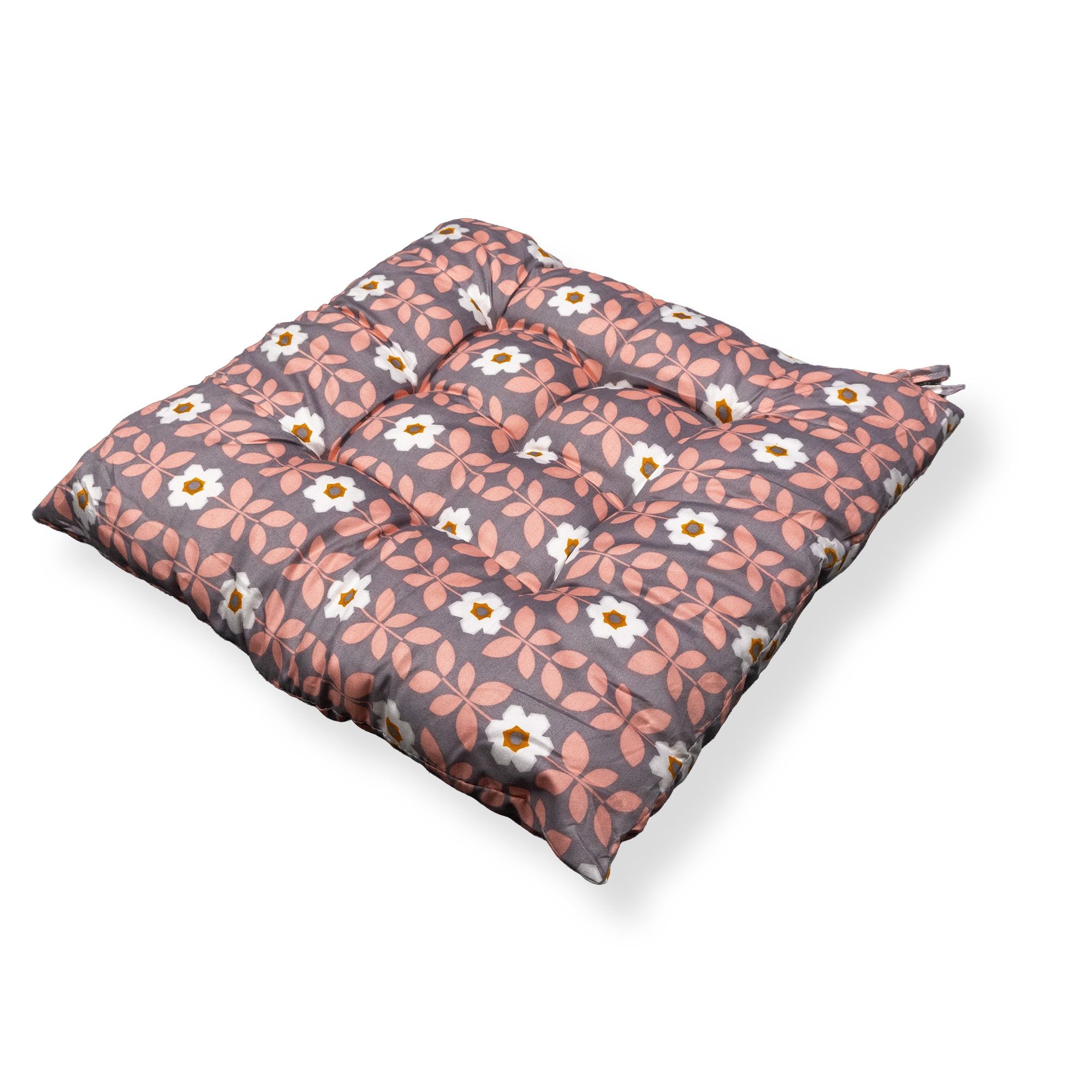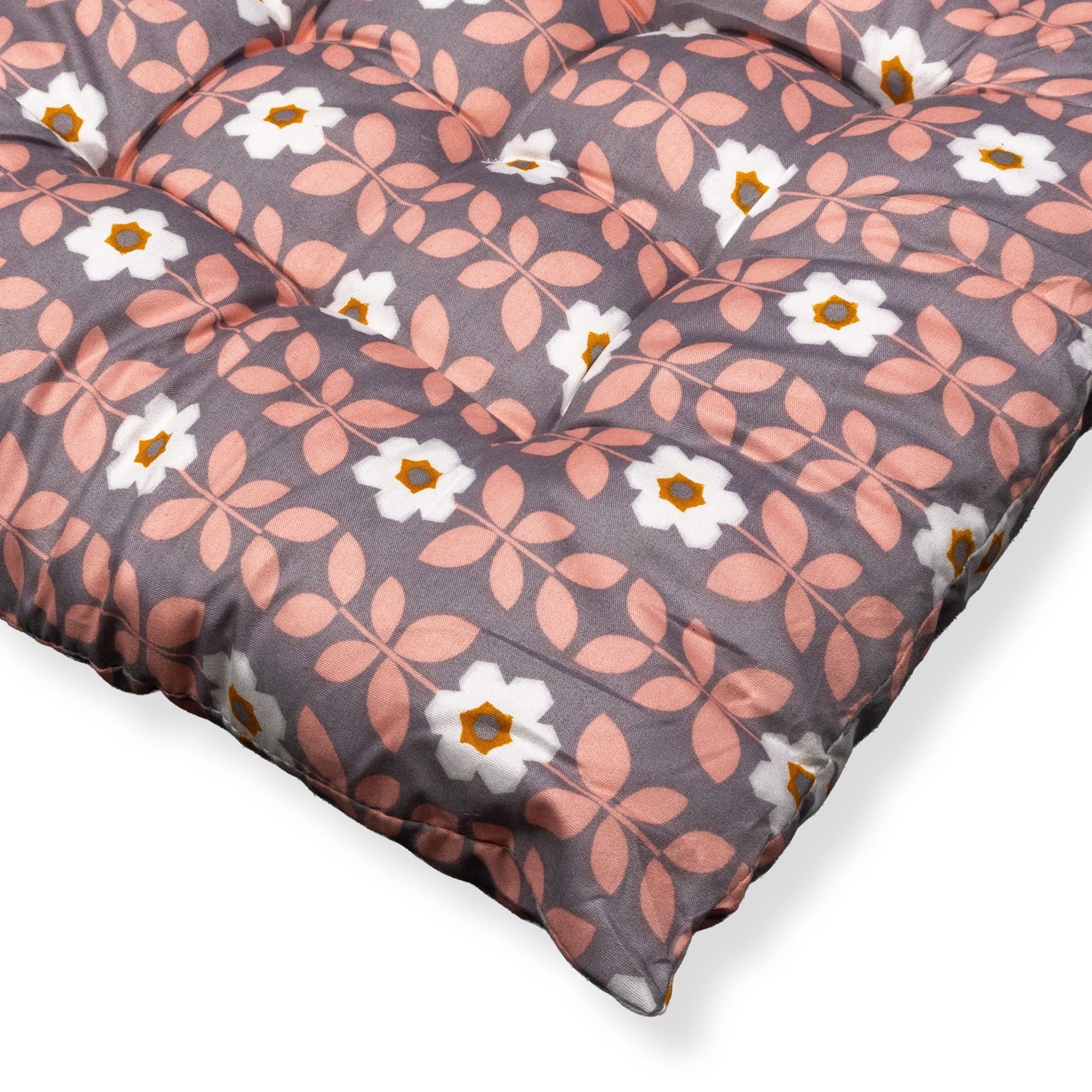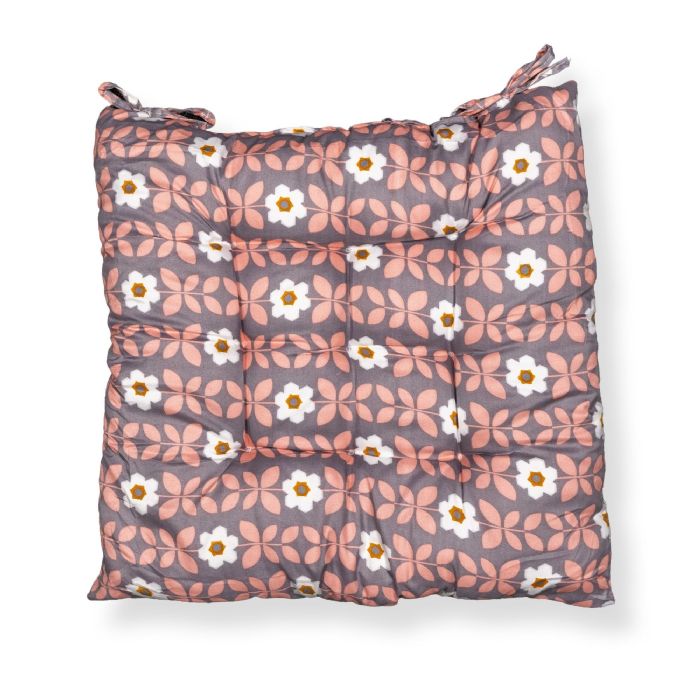 Stolehynde - 35x35x6 cm - Grå havehynde med rosa og hvide blomster - Blød komfort hynde
