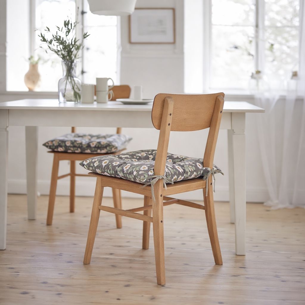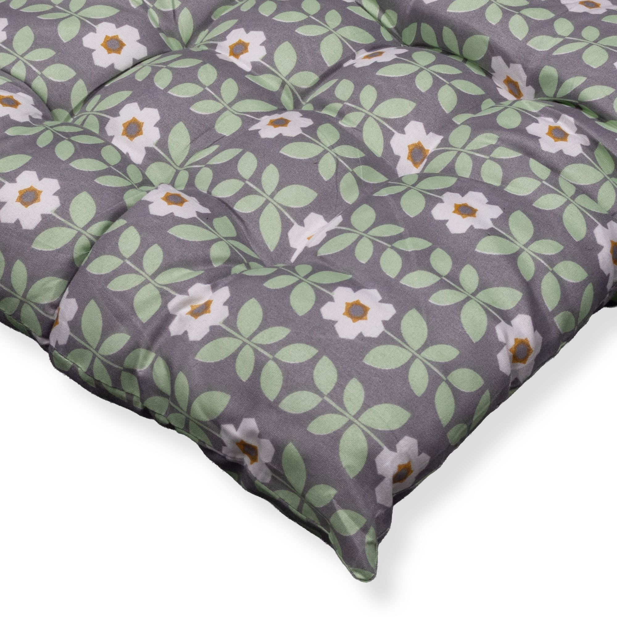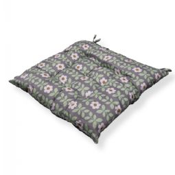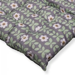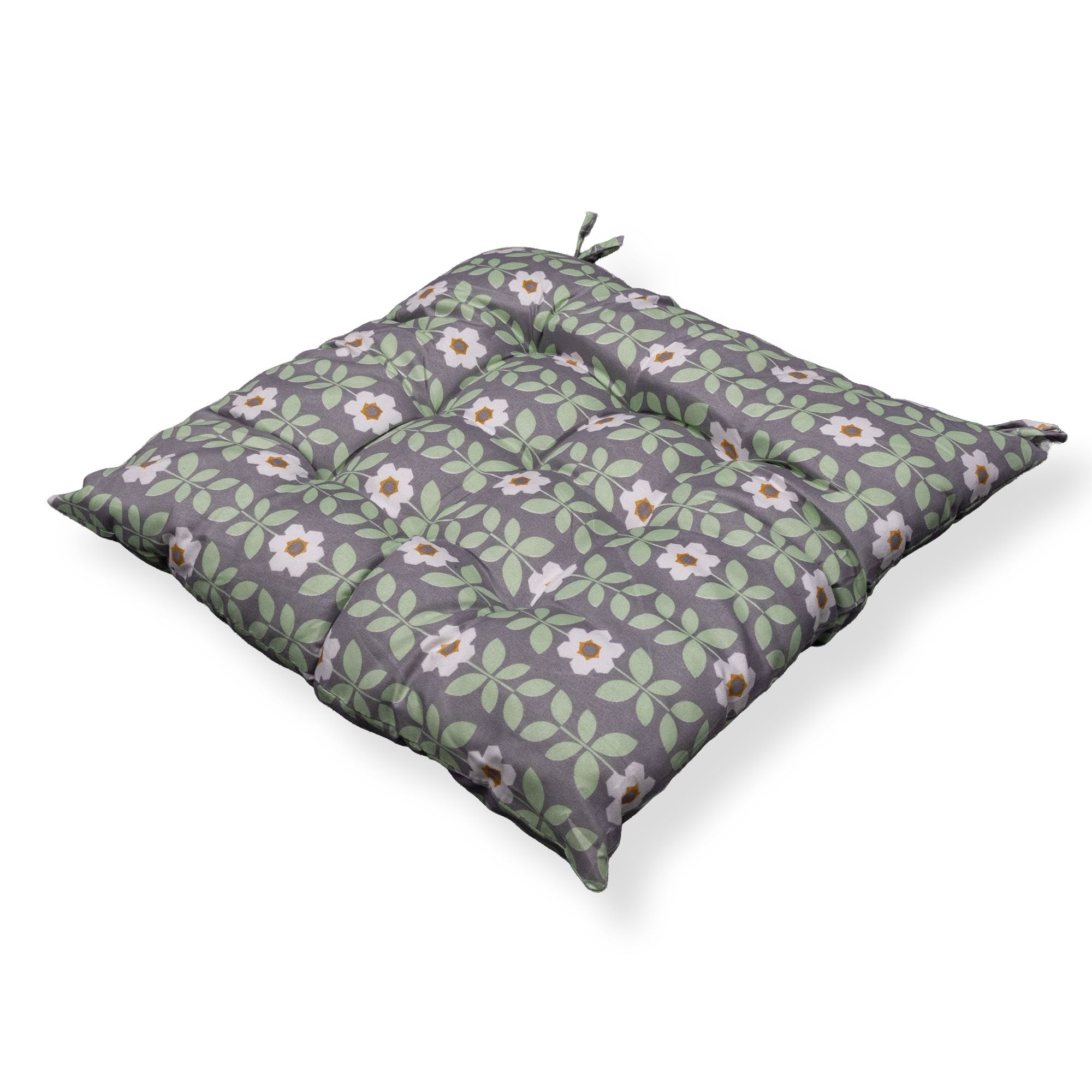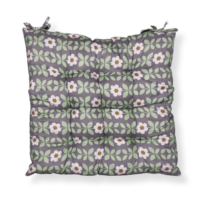 Stolehynde - 35x35x6 cm - Grå havehynde med grønne og hvide blomster - Blød komfort hynde