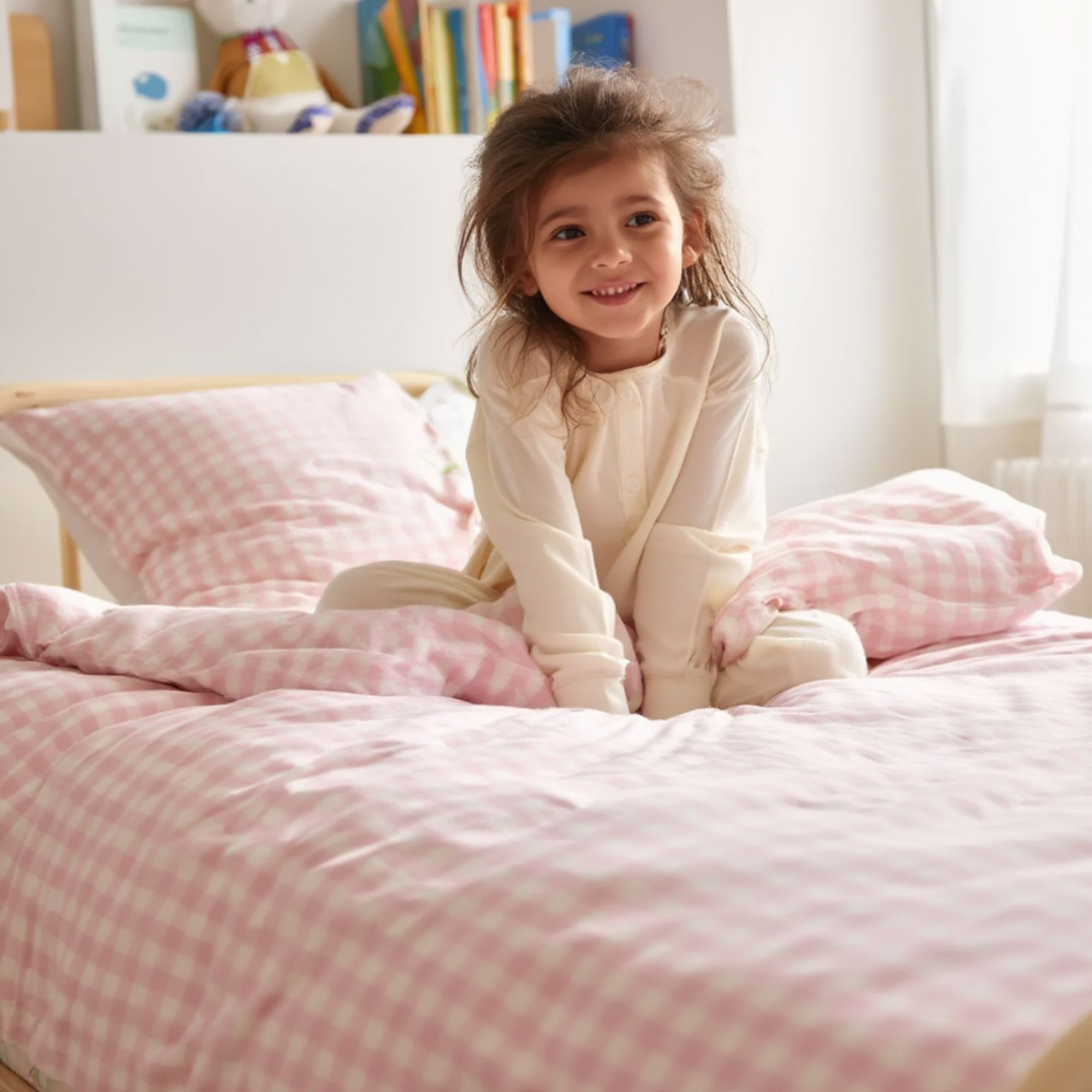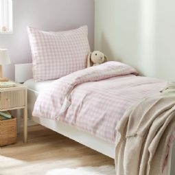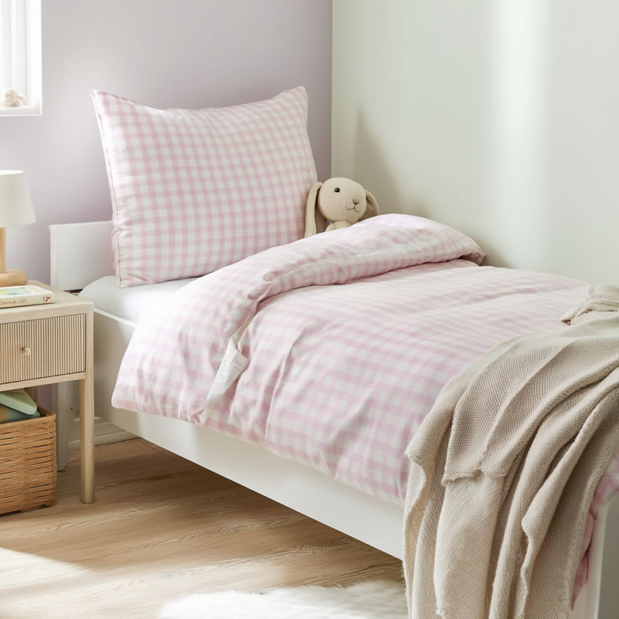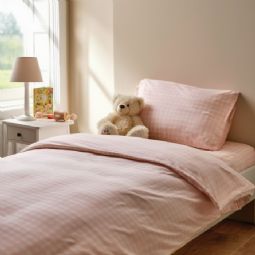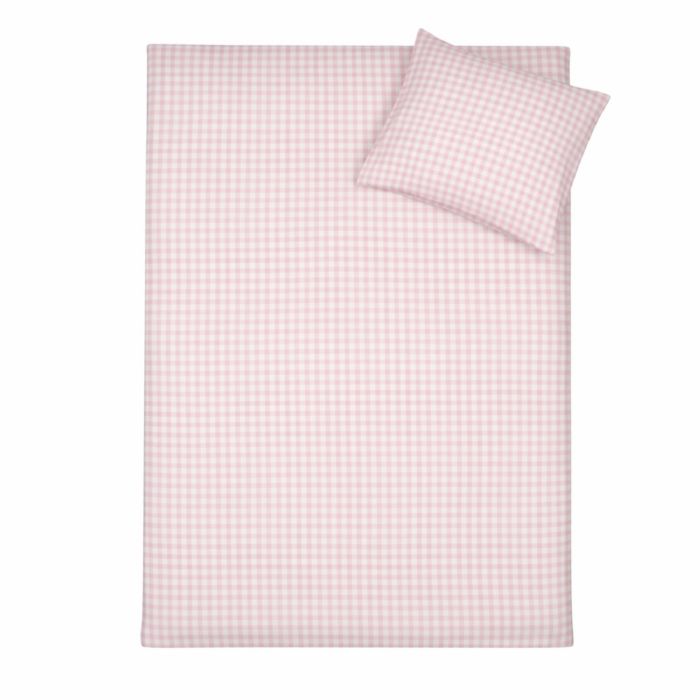 Ternet sengetøj - 100% bomuld - Babysengetøj 70x100 cm - Hvidt og lyserødt med tern