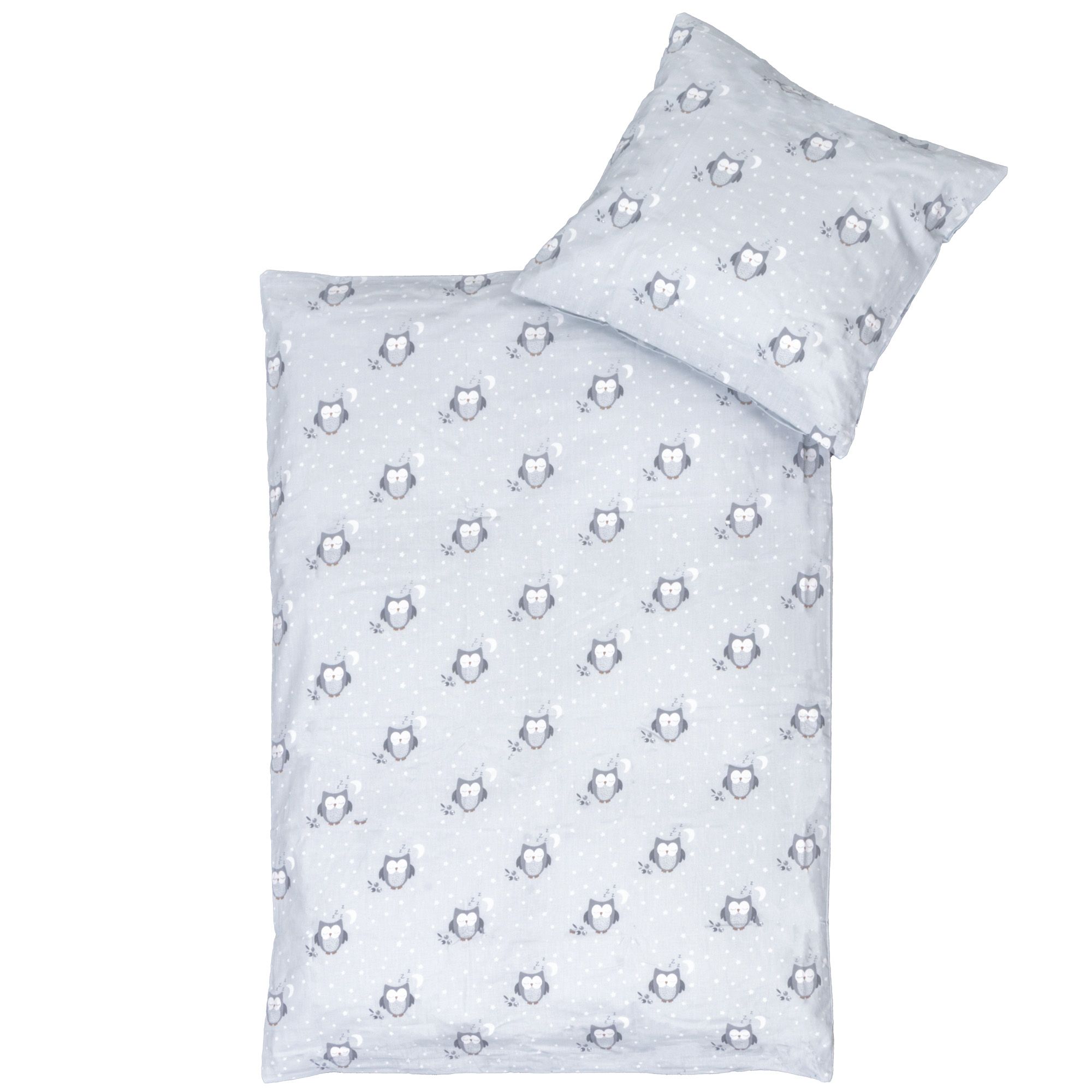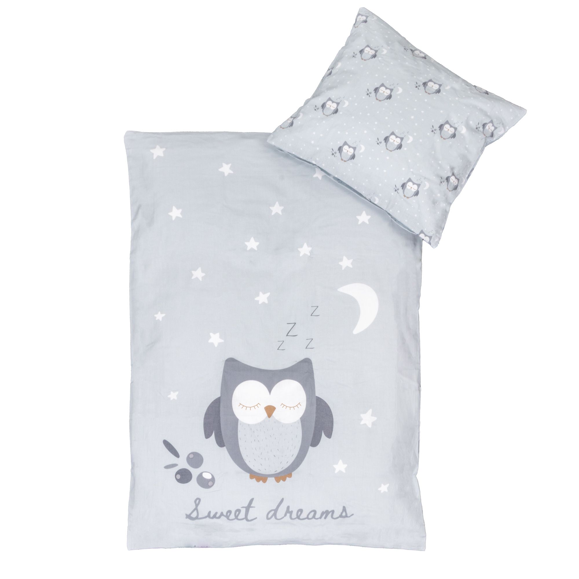 Blødt baby sengetøj i 100% bomuld, med et sødt design af en sovende ugle i en rolig farve. Produceret med lette og åndbare bomuldsfibre giver en sengesættet en følelse af blødhed, der gør at dynen vil falde natuligt rundt om dit barn. Balancen i naturlig komfort fra det bløde materiale og det hyggelige ugle design, gør dette sæt til en sikker favorit hos dit barn.