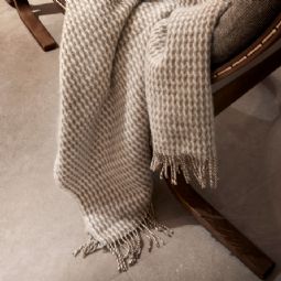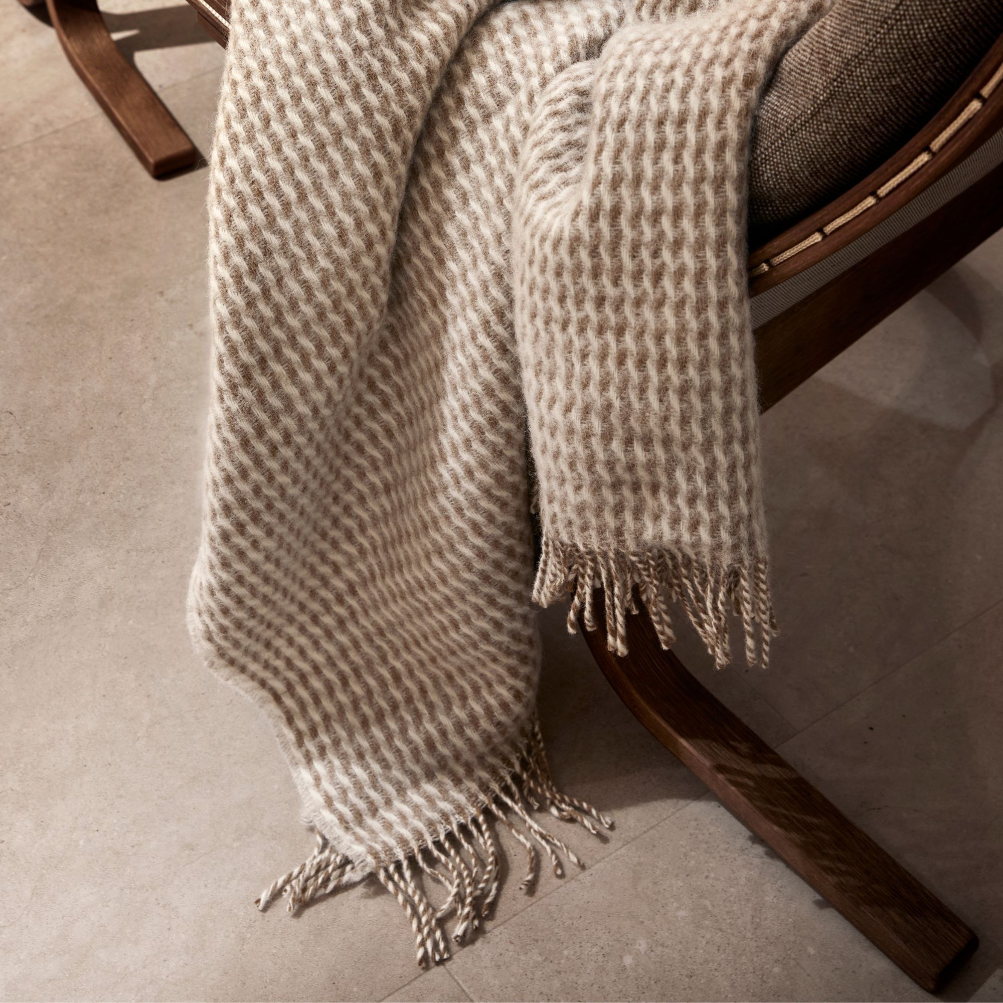 Uldplaid produceret i 100% ny ren uld. Tæppet er allergivenligt og via dets naturlige egenskaber er brandhæmmende, selvrensende og fugtregulerende, alt sammen noget som skaber er trygt og sund indeklima. Uld er et naturligt, åndbart materiale, der effektivt varmer og isolerer. Uldfibre er naturlige, fornybare og biologisk nedbrydelige, hvilket gør dette tæppe til et bæredygtigt valg. Der er få ting, der slår et skønt uldtæppe, som både varmer på kolde dage og er en fryd for øjet.