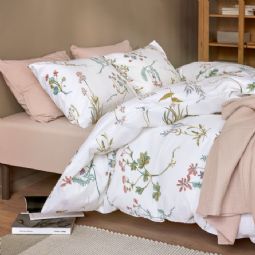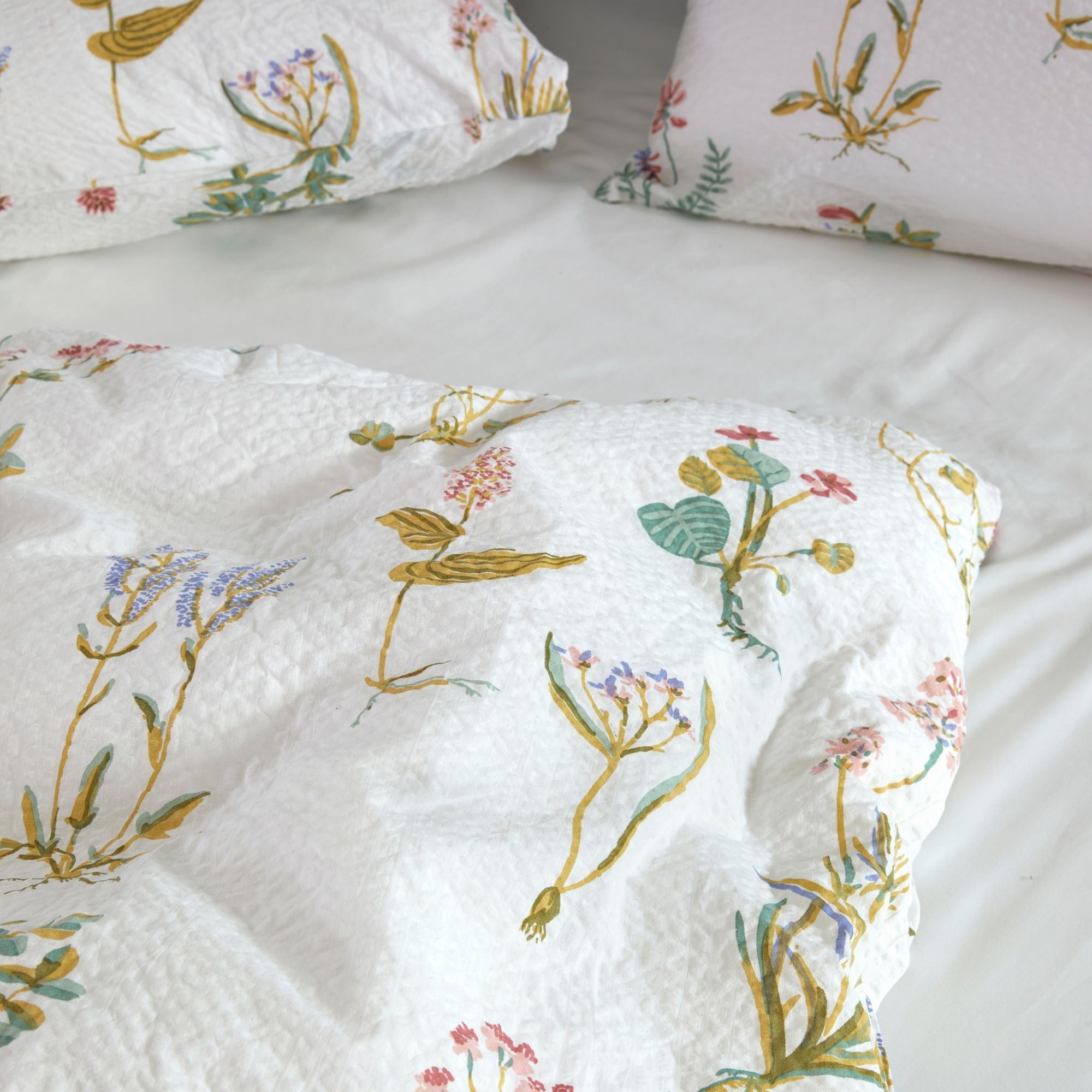Vævet krepp sengetøj 140x220 cm - Hvidt sengesæt med blomster - 100% blød bomuld - Bæk og bølge sengelinned - Fiona Høie Of Scandinavia