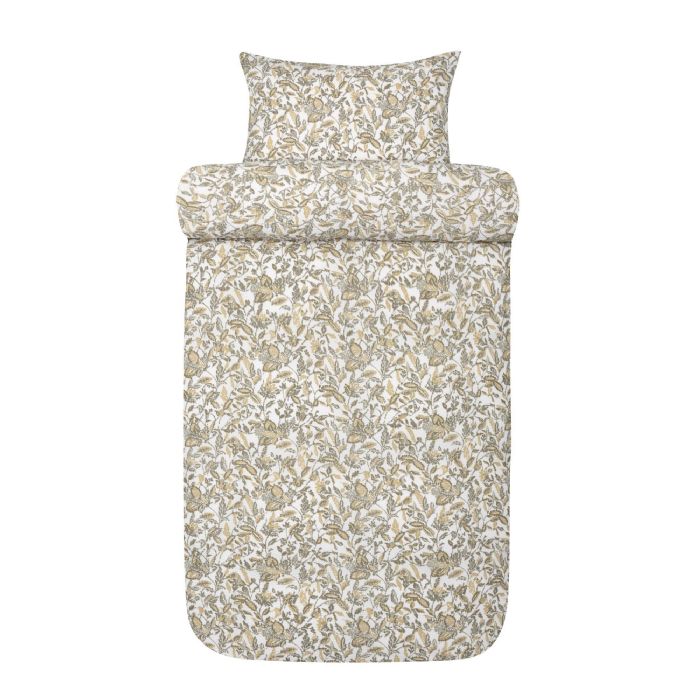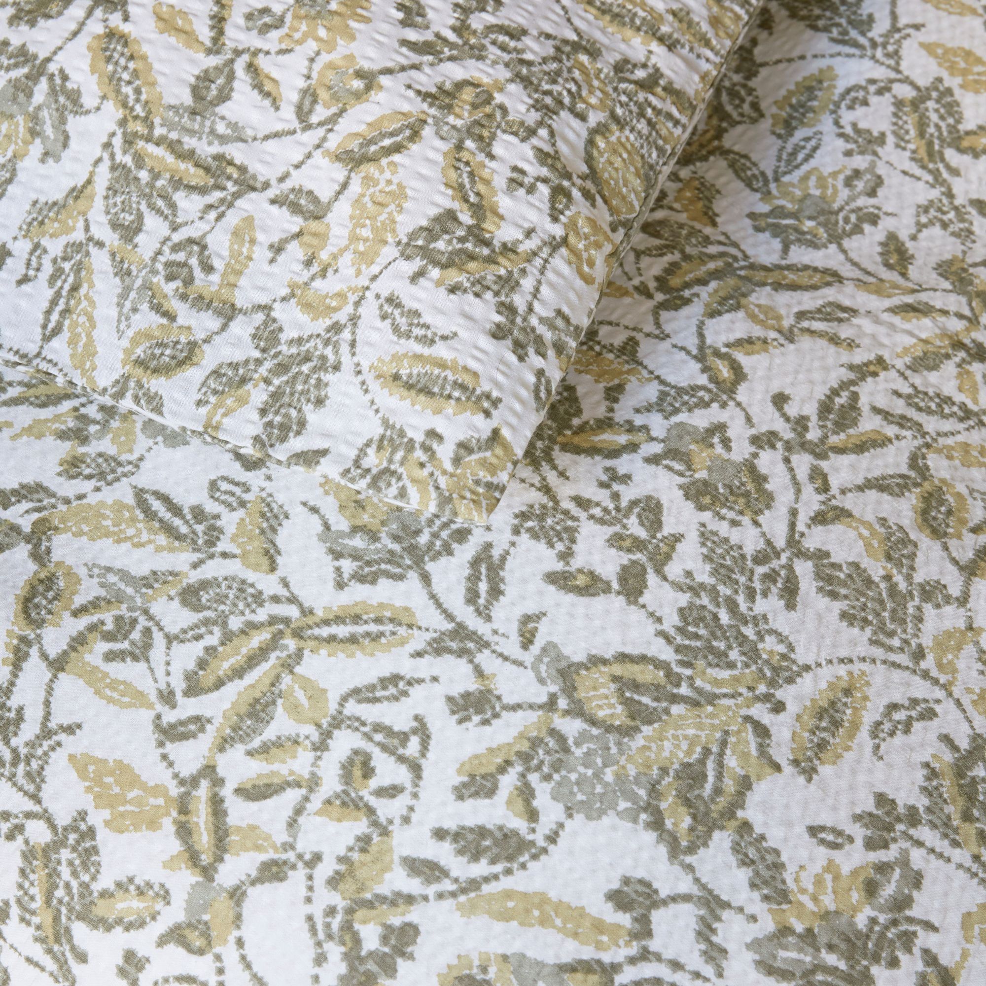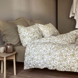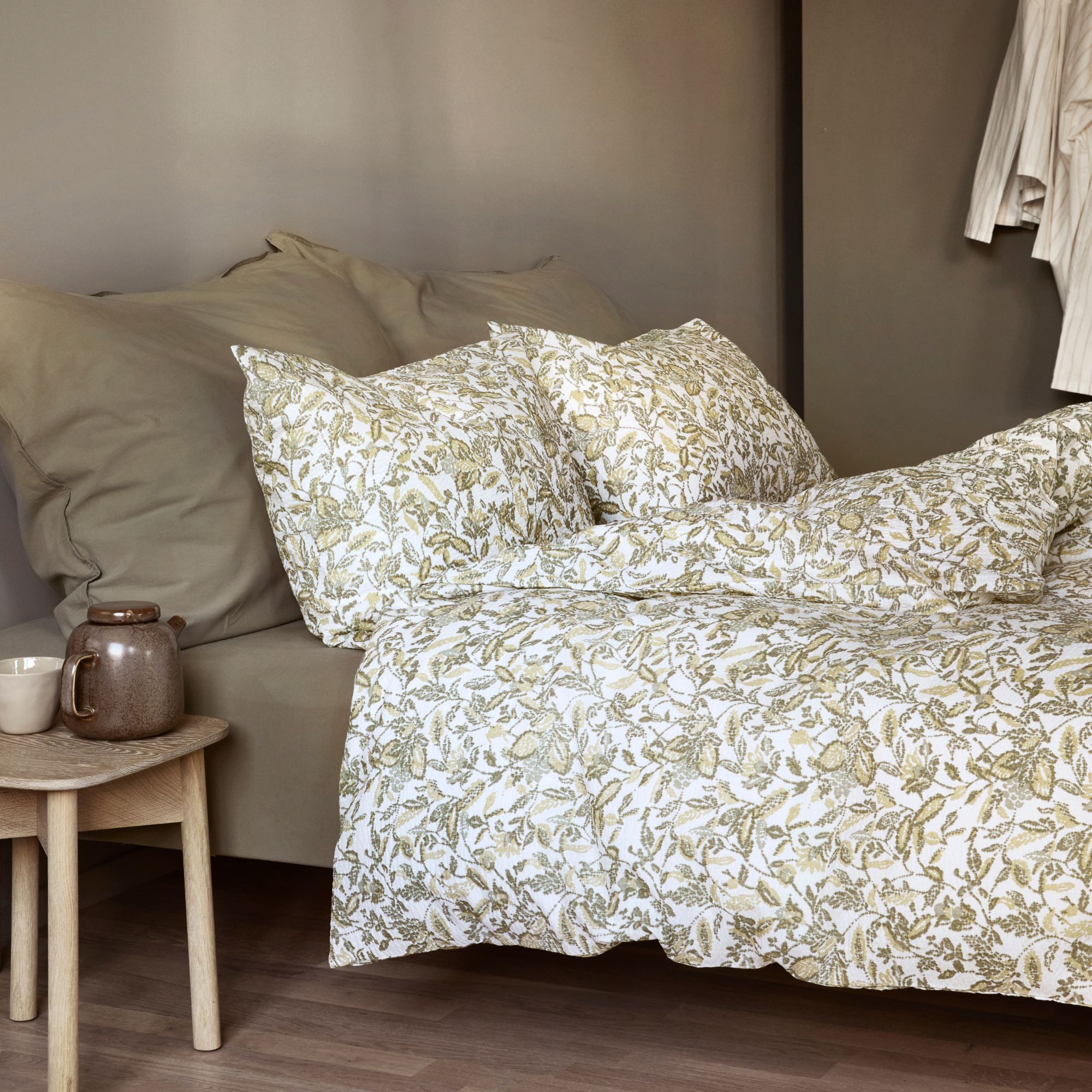 Vævet krepp sengetøj 140x220 cm - Grønt sengesæt med blade - 100% blød bomuld - Bæk og bølge sengelinned - Barbro Høie Of Scandinavia