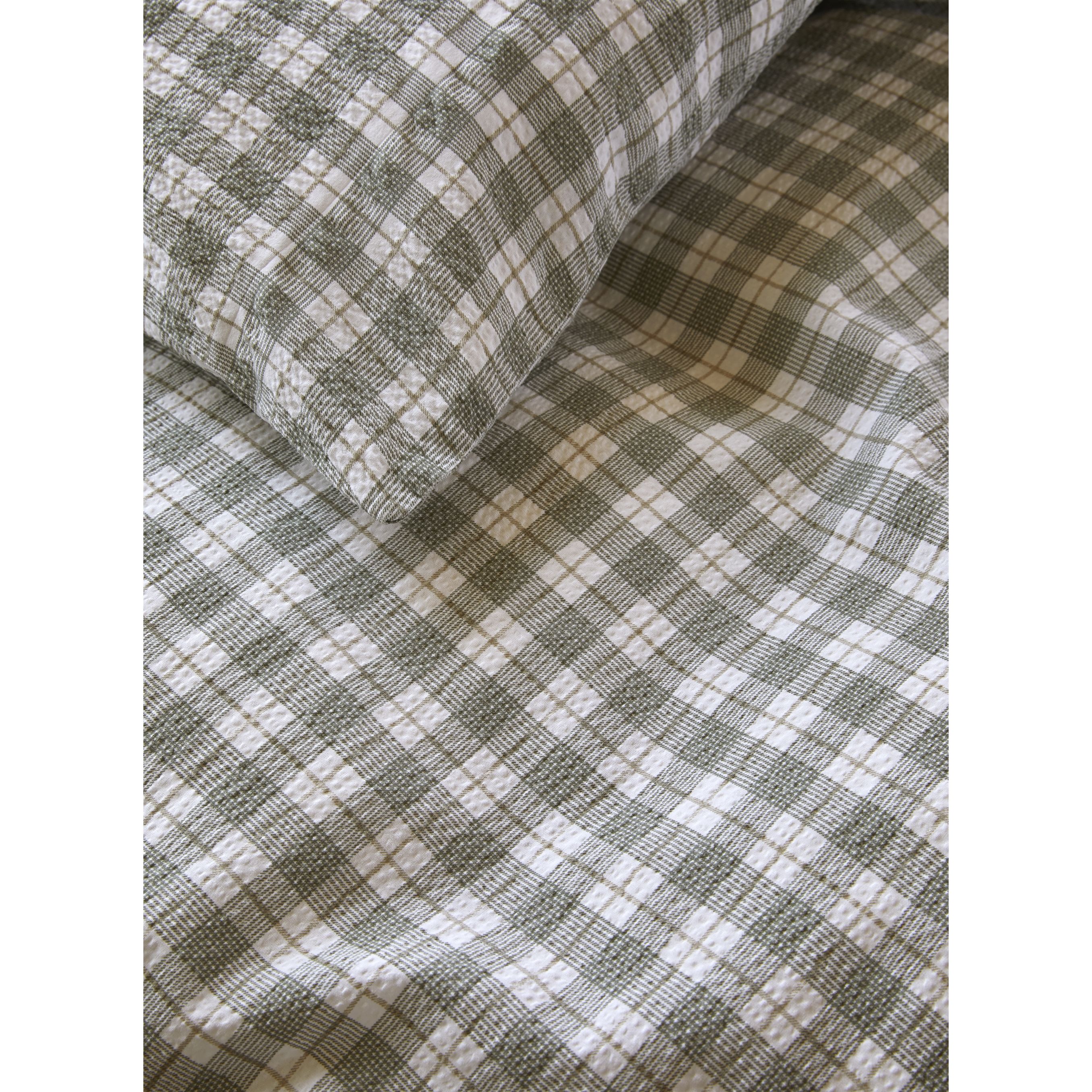 Vævet krepp sengetøj 140x220 cm - 100% blød bomuld - Grøn med tern - Bæk og bølge sengelinned - Kyrre Høie Of Scandinavia
