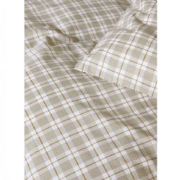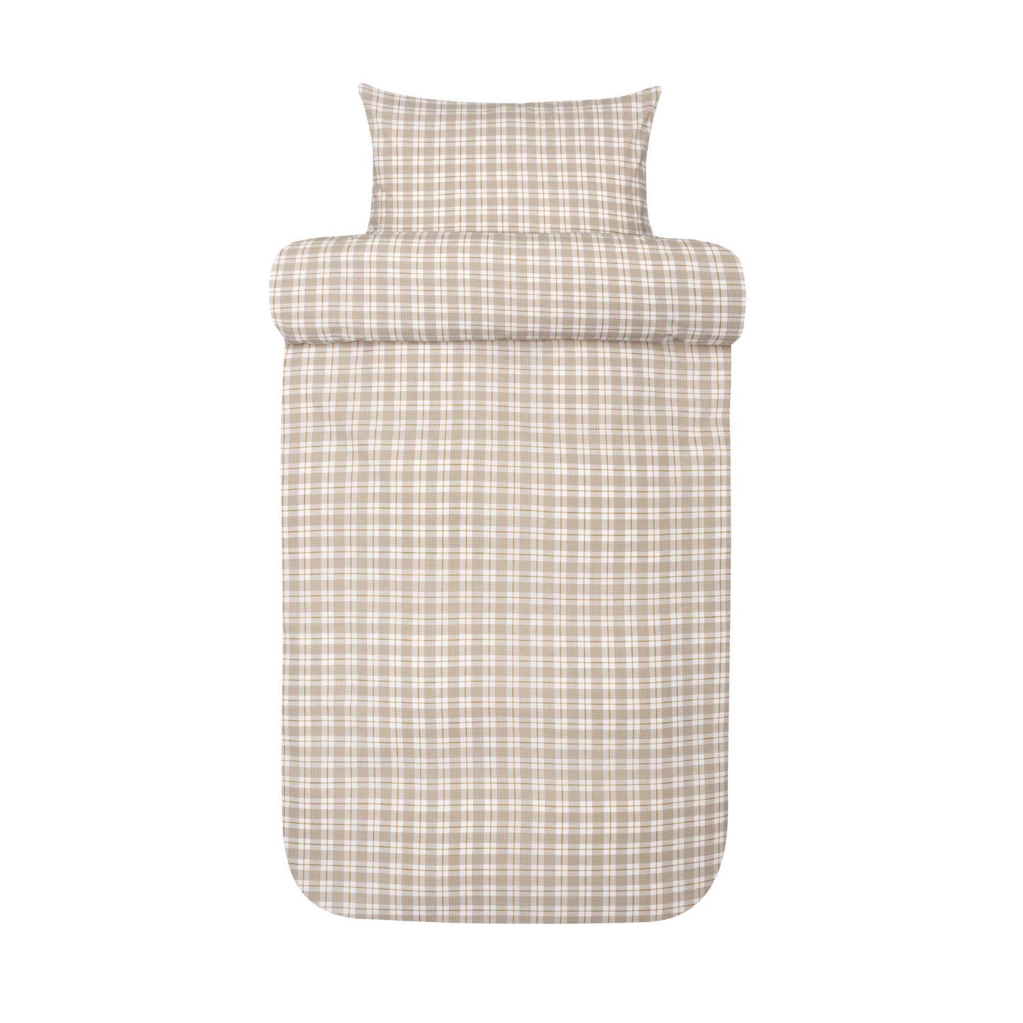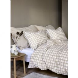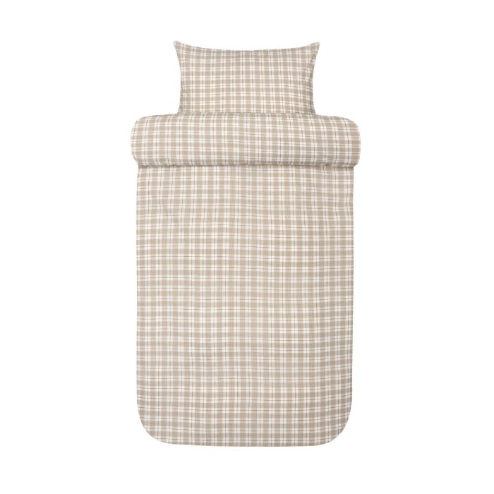 Vævet krepp sengetøj 140x200 cm - 100% blød bomuld - Beige med tern - Bæk og bølge sengelinned - Kyrre Høie Of Scandinavia