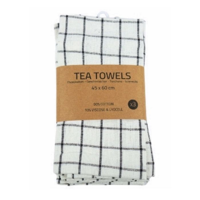 Viskestykker - 3-pak - Bomuld - 45x60 cm - Hvid med store sorte tern